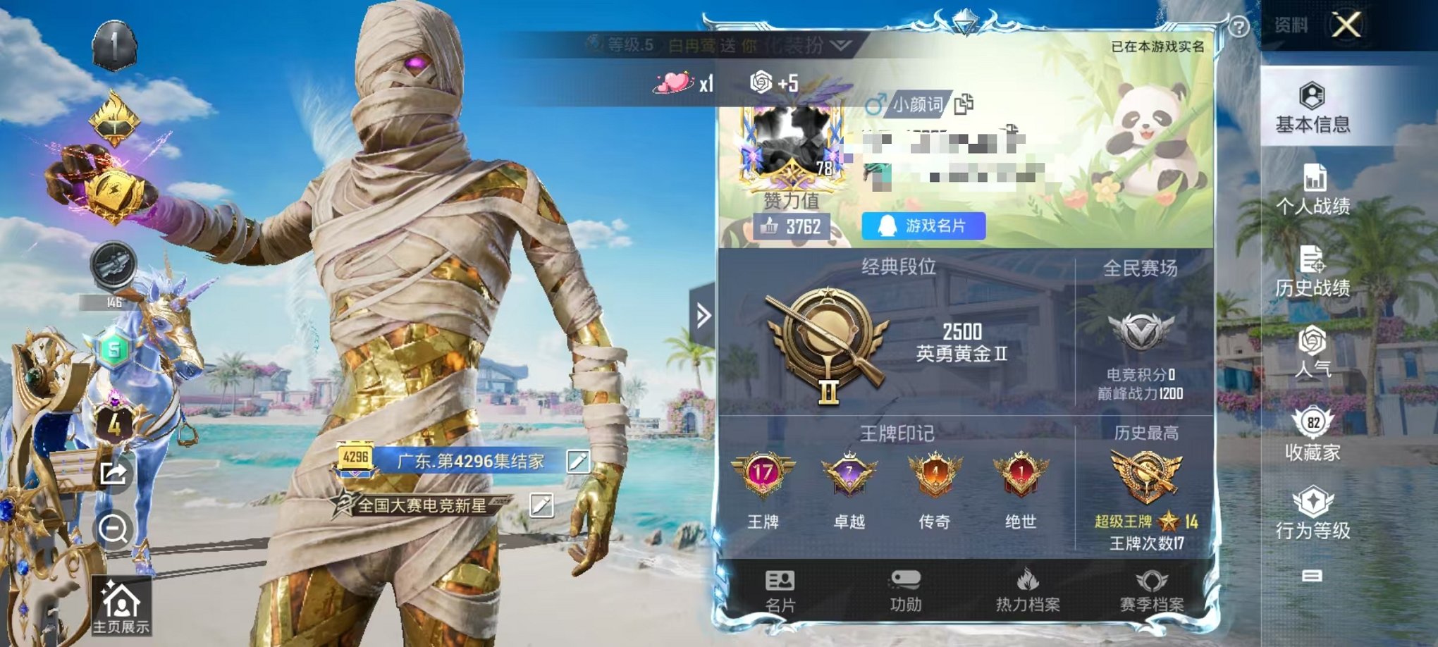 10王牌印记-有战神框-4红装-6粉装-16特效枪-5载具-76509热力值-138套装-196枪皮-7卓越印记-7传奇印记