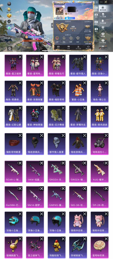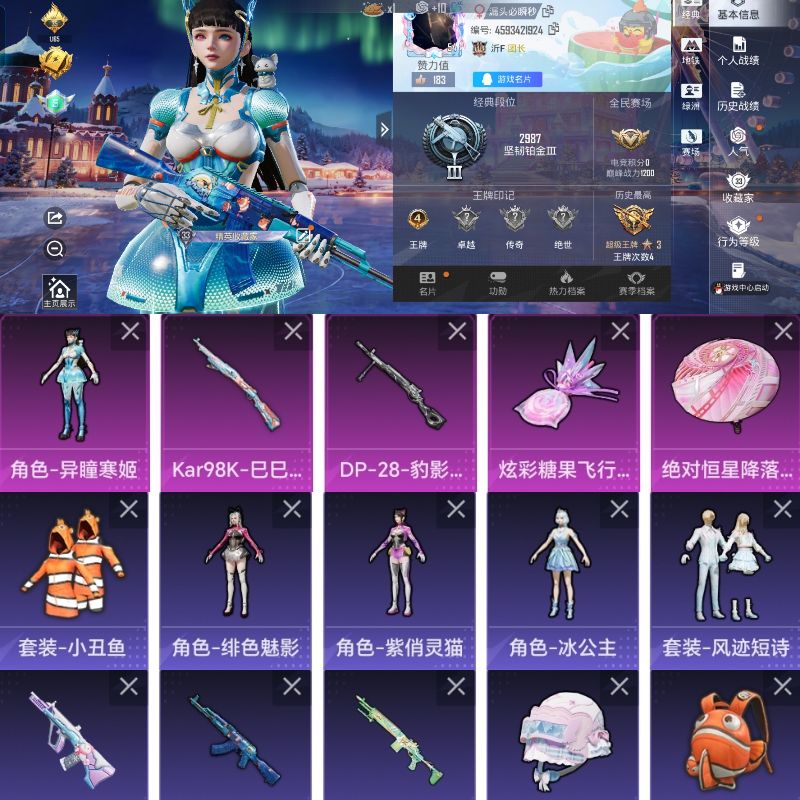 时装数: 153 载具数: 2 枪械数: 215 战备数: 144 热门装扮: