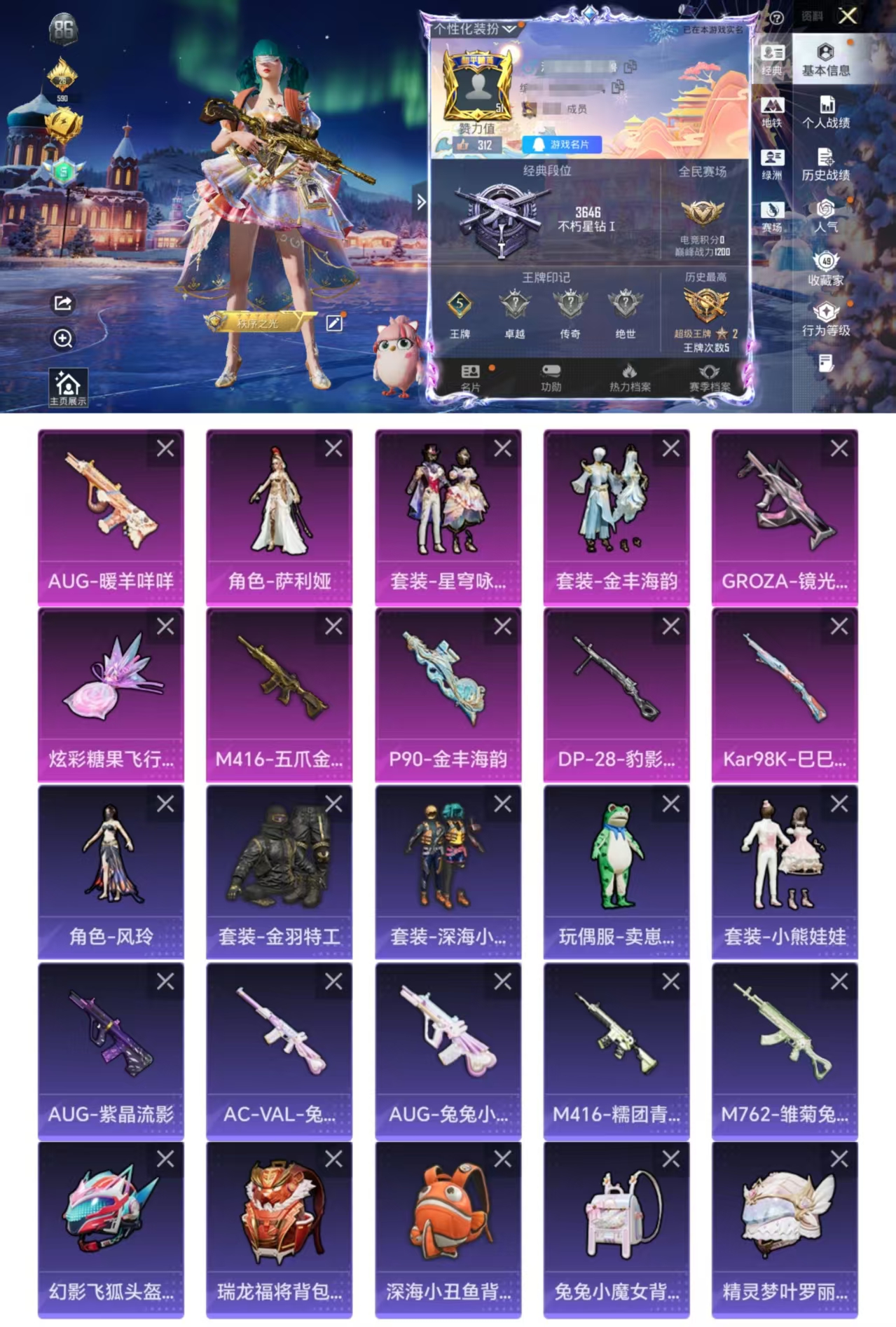 2王牌印记-1粉装-1特效枪-76枪皮-72套装-3载具