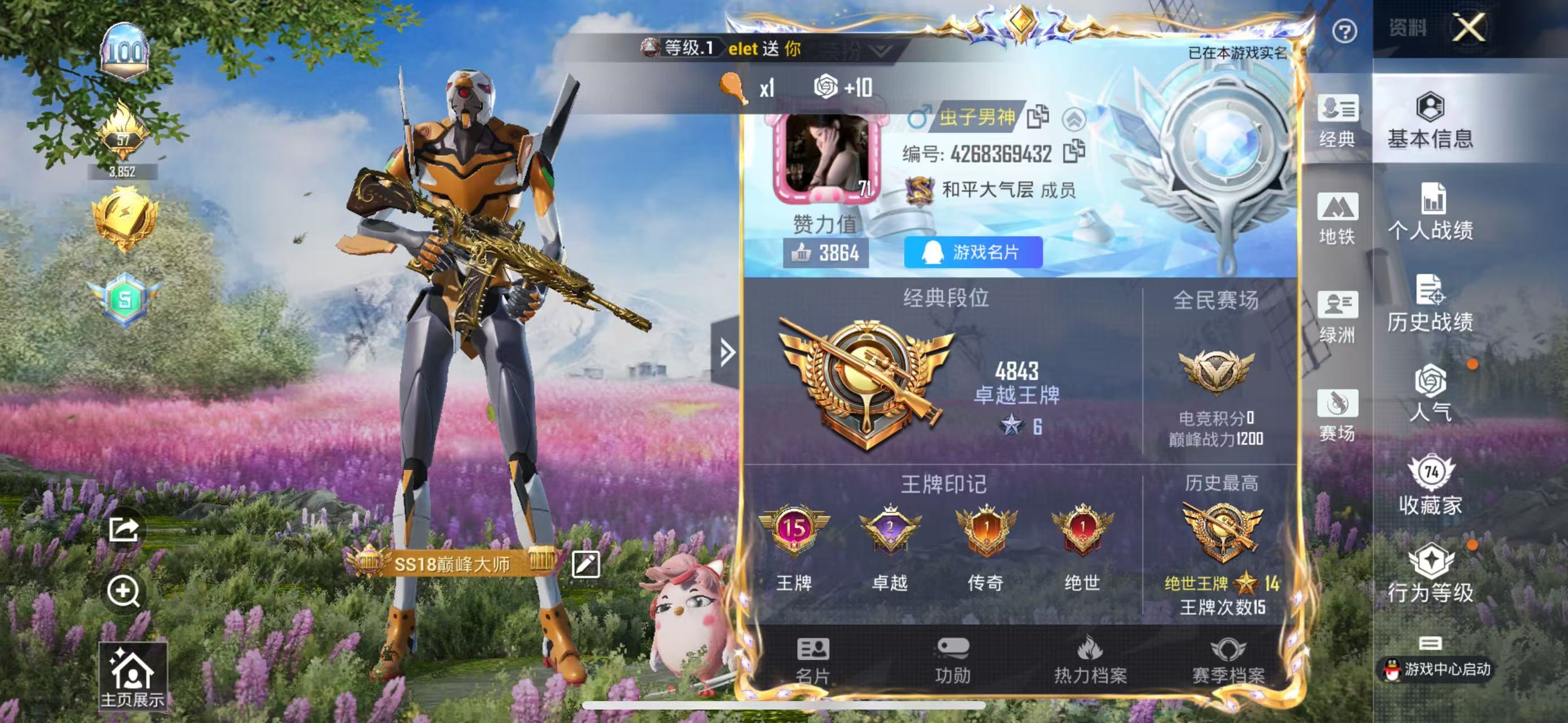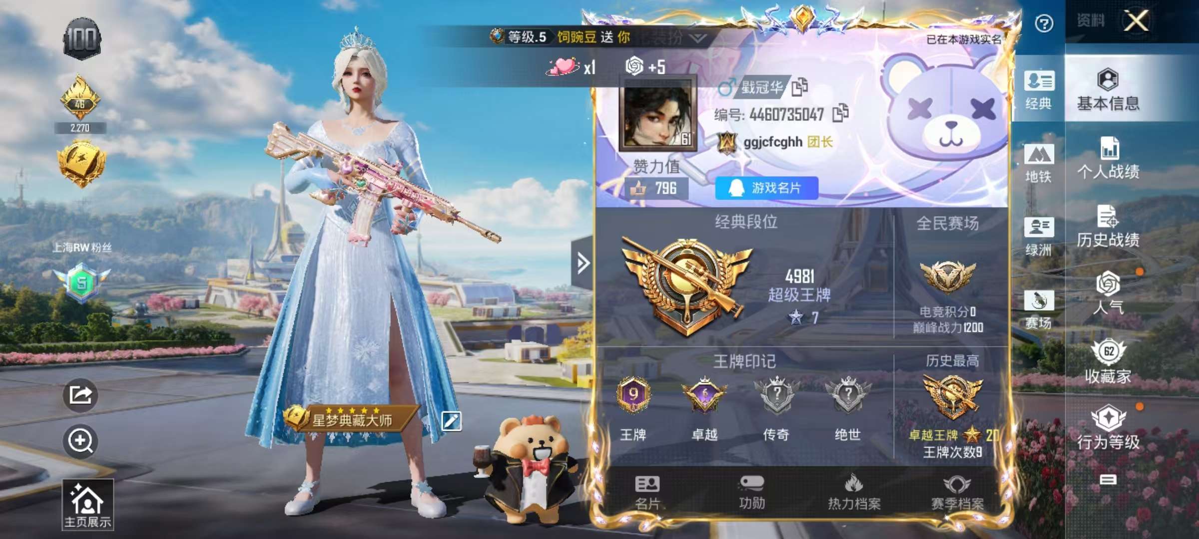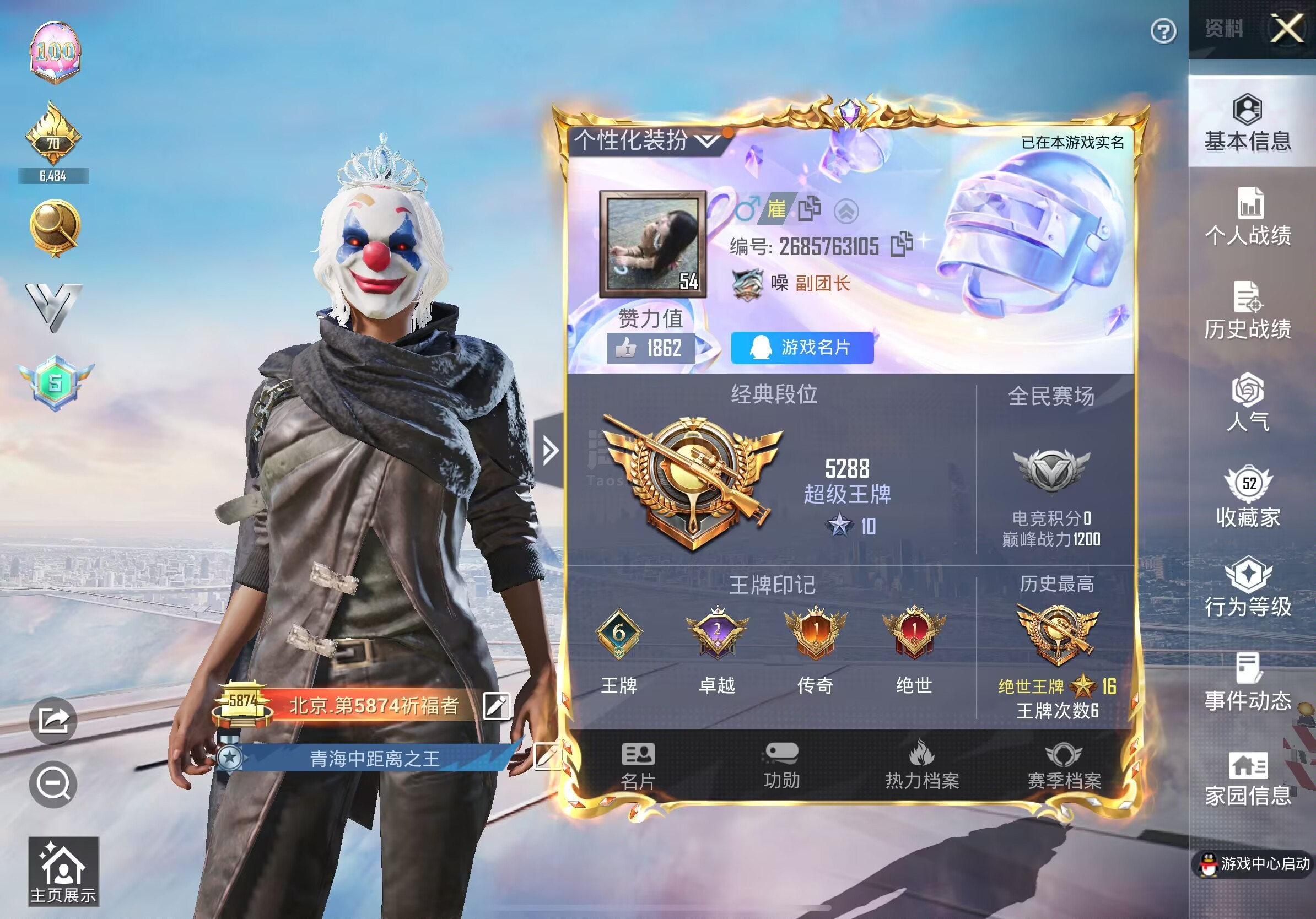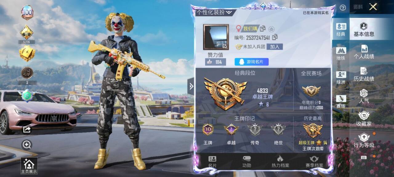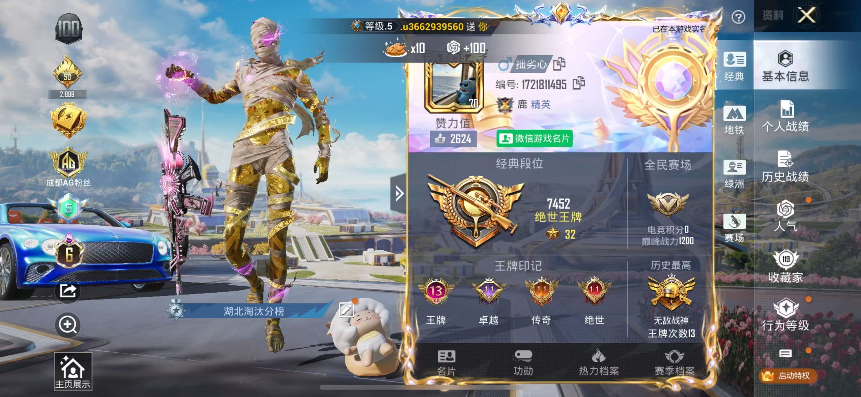 和平精英【苹果微信】hs46141 苹果v-15王牌印记-有战神框-47粉装-28特效枪-12载具-167033热力值