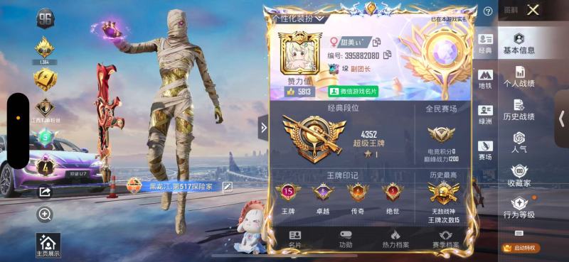 和平精英【安卓QQ】苹果qq-13王牌印记-7粉装-8特效枪-4载具-53230热力值-战备14