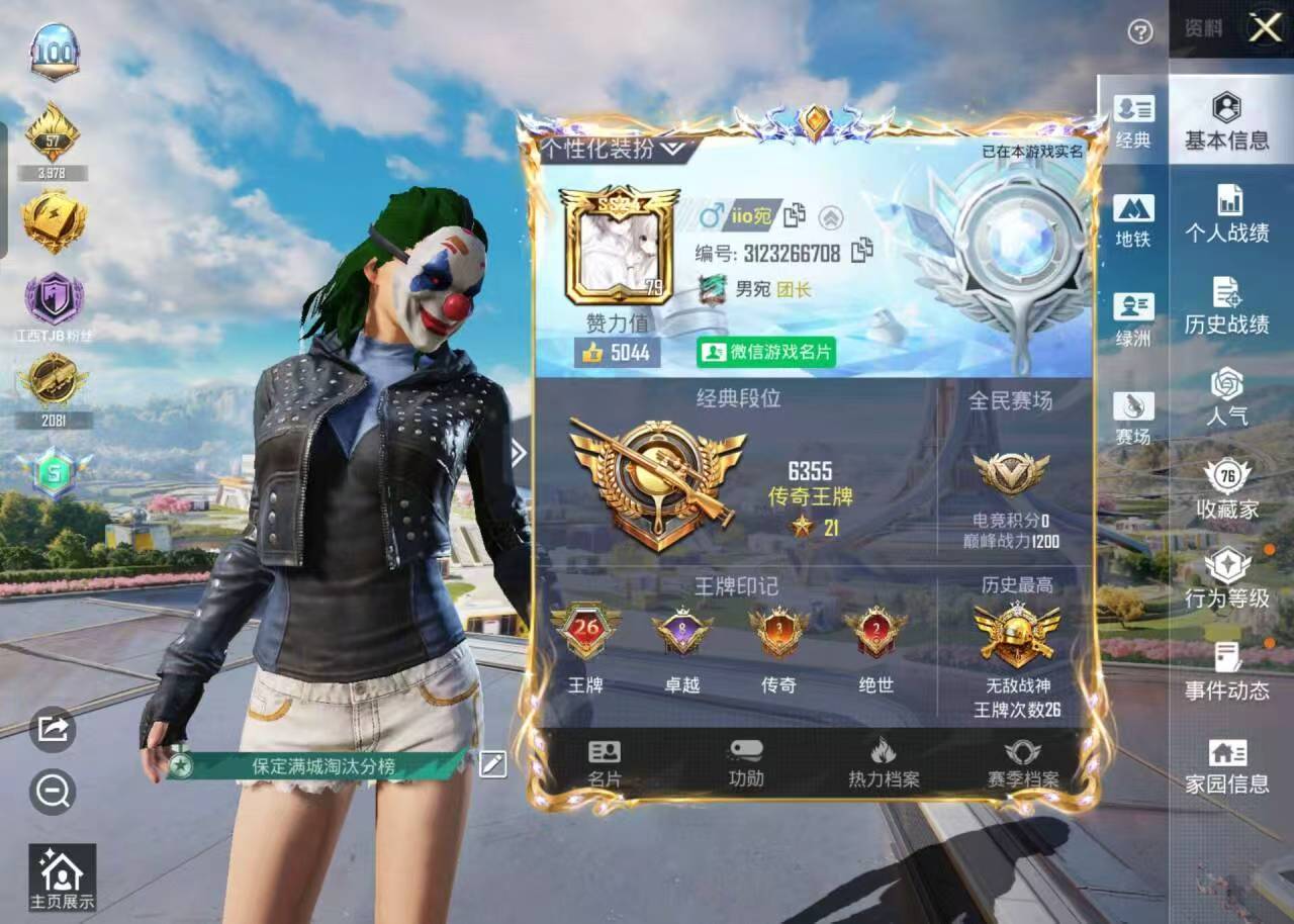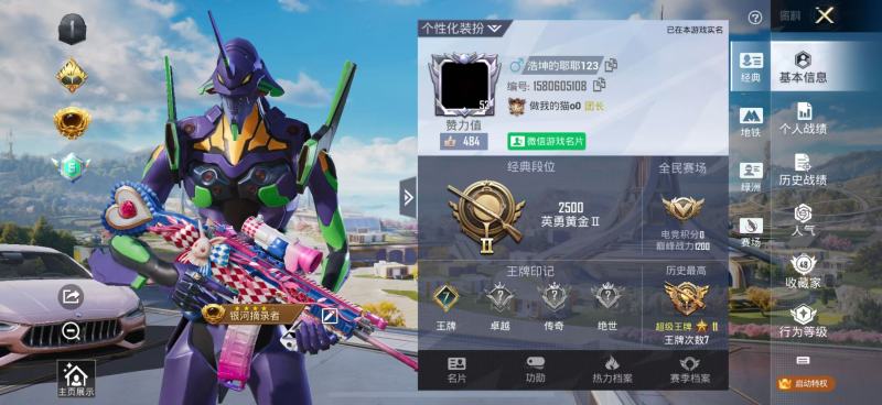 和平精英【安卓微信】hs50015 安卓v-26王牌印记-有战神框-12粉装-8特效枪-3载具-102481热力值-2