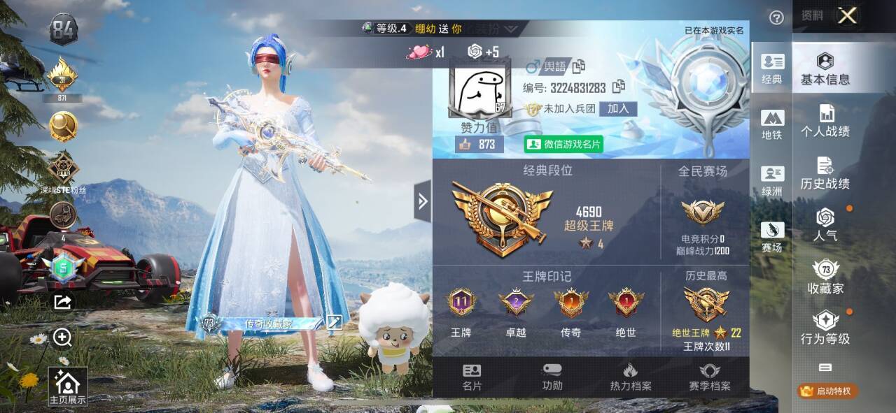 和平精英【苹果QQ】hs49700 苹果手Q-20王牌印记-有战神框-22粉装-27特效枪-7载具-134914热力值-
