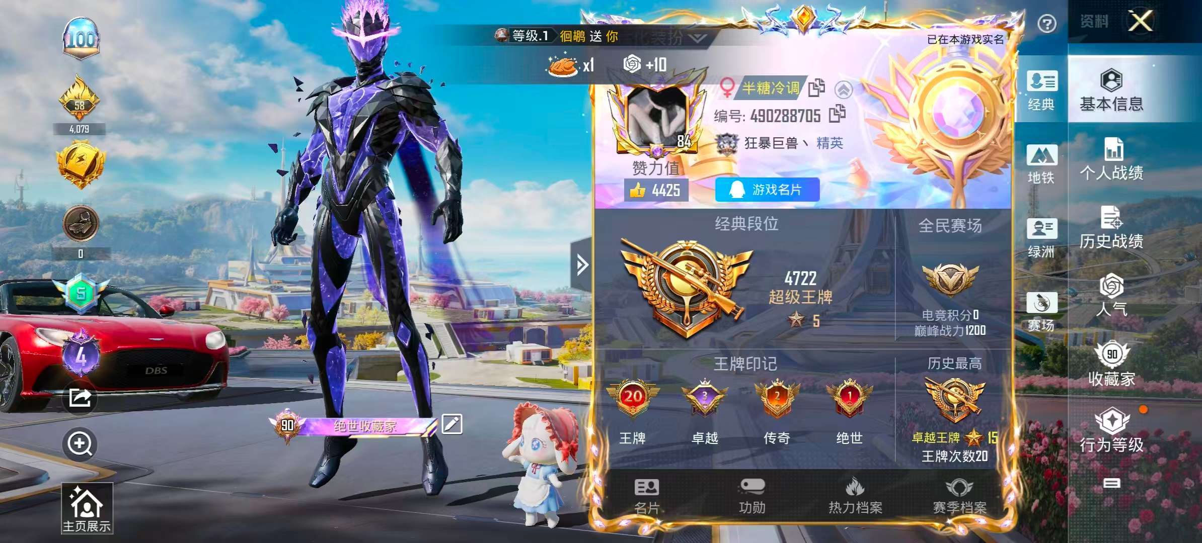 和平精英【安卓QQ】hs49683 安卓手Q-9王牌印记-1红装-4粉装-4特效枪-2载具-47825热力值-105套装