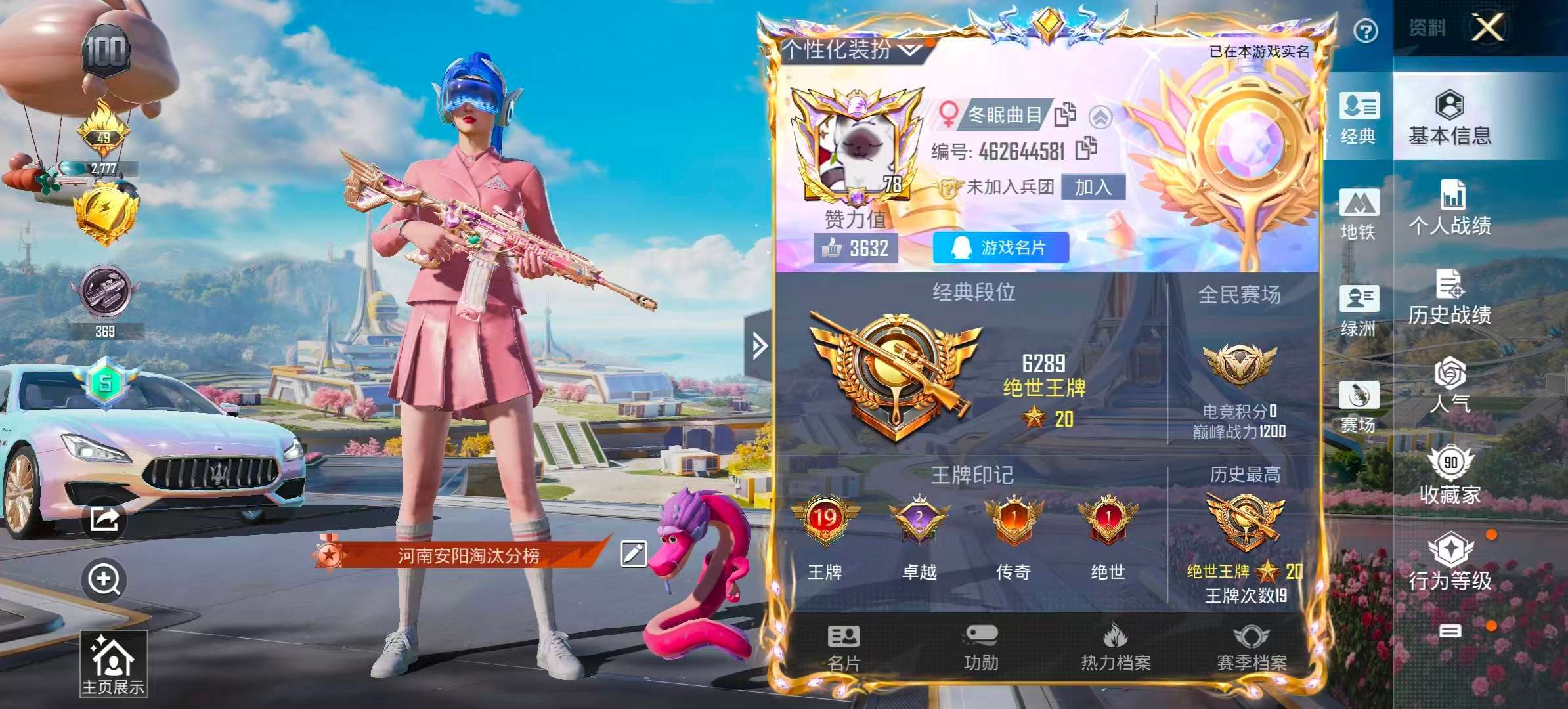 和平精英【安卓QQ】hs49706 安卓手Q-10王牌印记-19粉装-10特效枪-1载具-82137热力值-190套装-