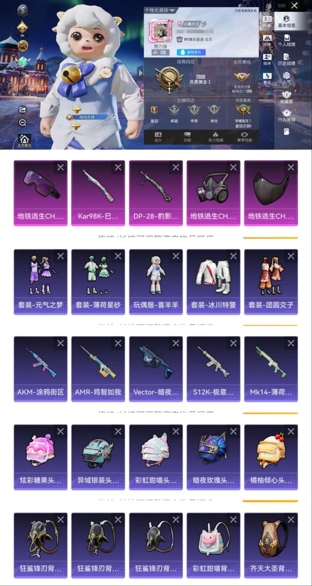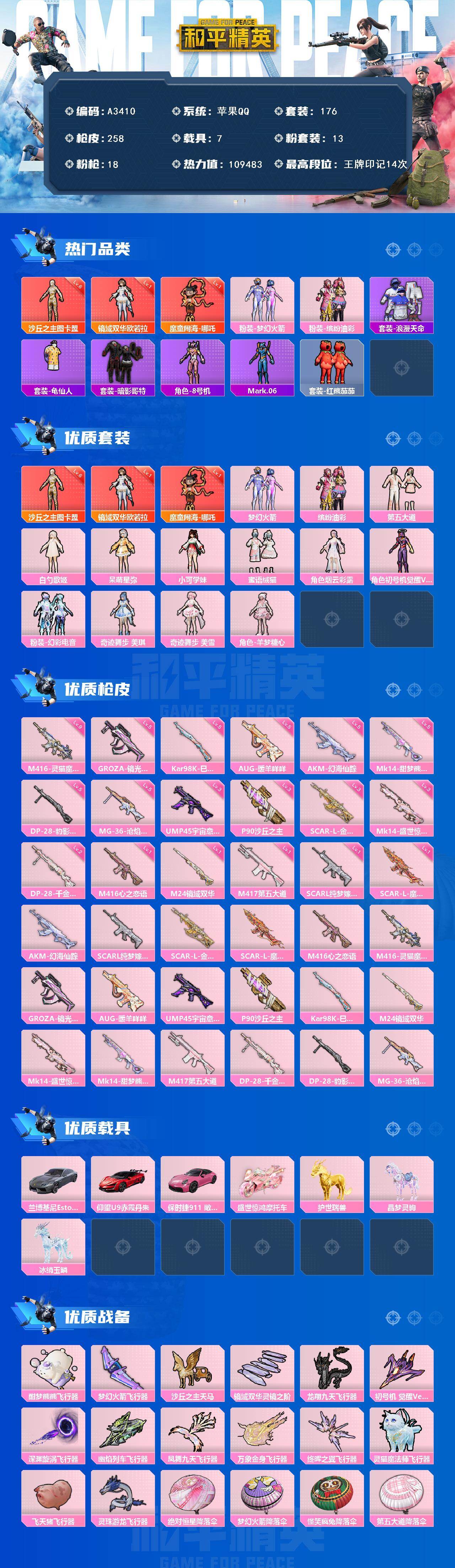 3神装-13粉装-18特效枪-7载具-17粉色飞行器-109483热力值-14王牌印记-176套装-258枪皮