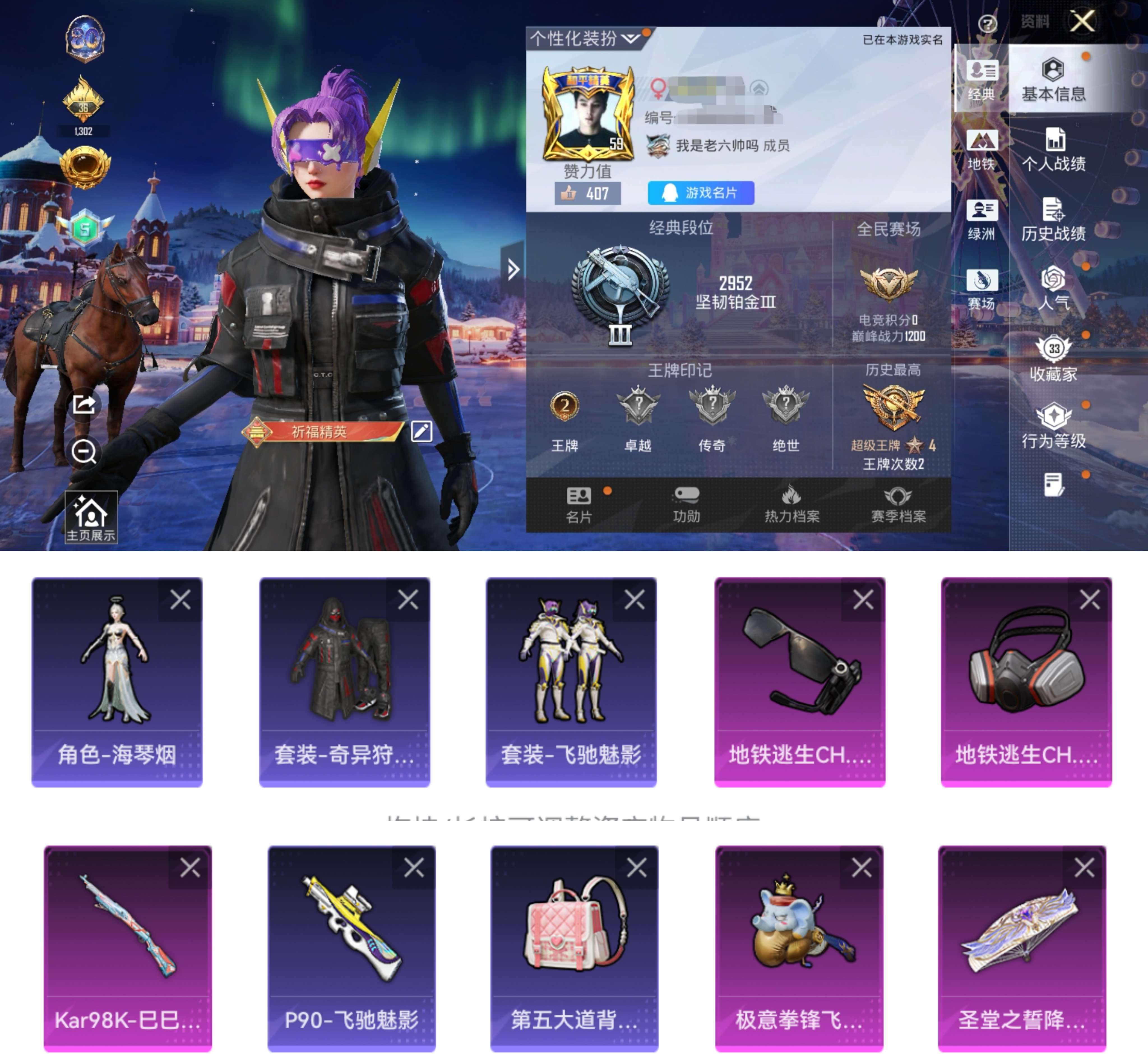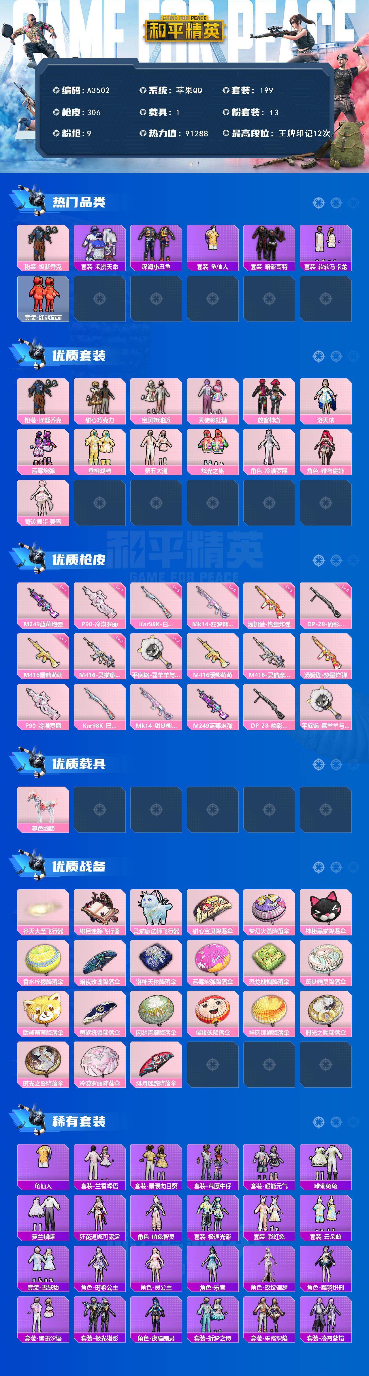 13粉装-9特效枪-1载具-4粉色飞行器-91288热力值-12王牌印记-199套装-306枪皮