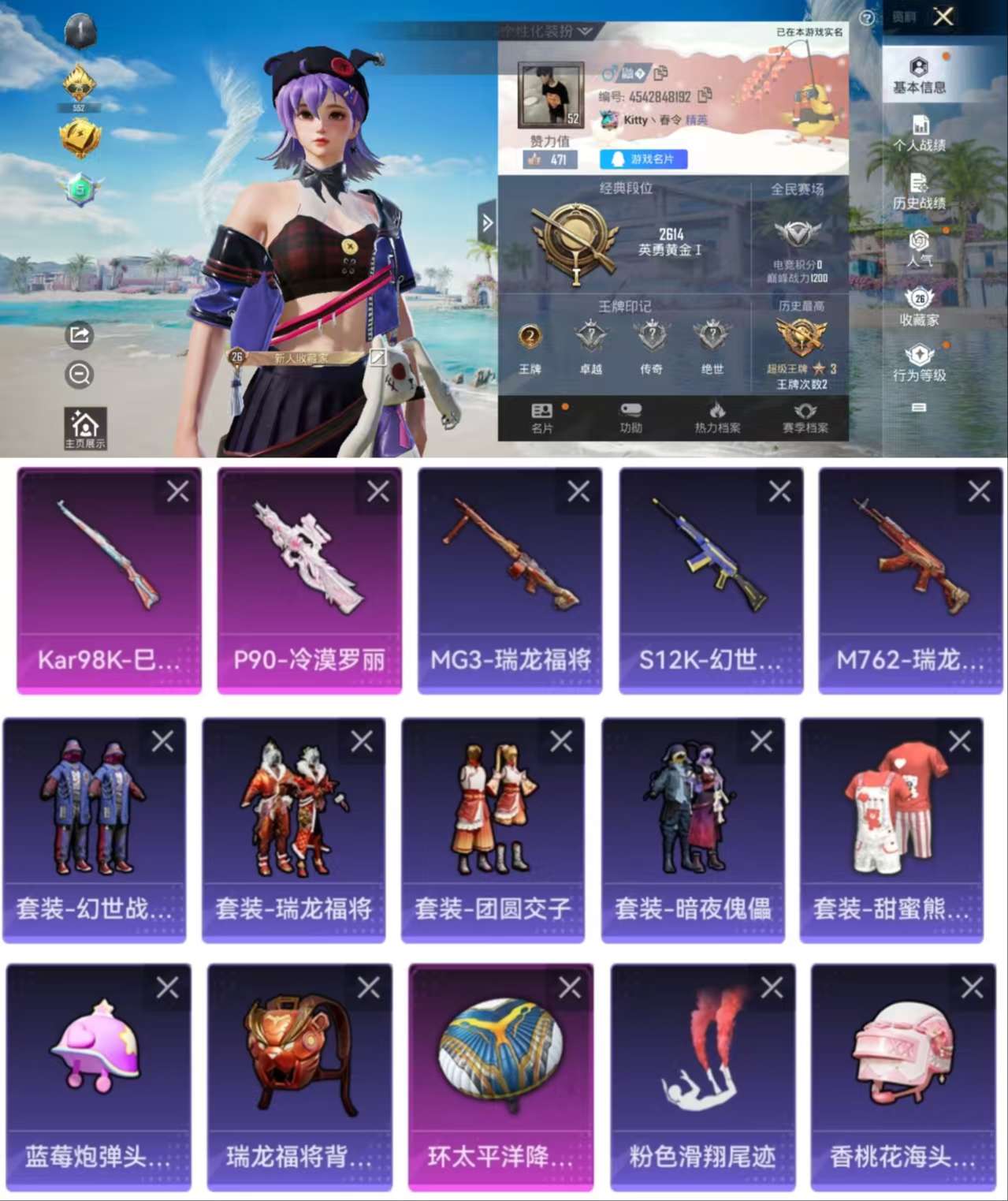 10粉装-8特效枪-4载具-4粉色飞行器-88039热力值-19王牌印记-177套装-252枪皮