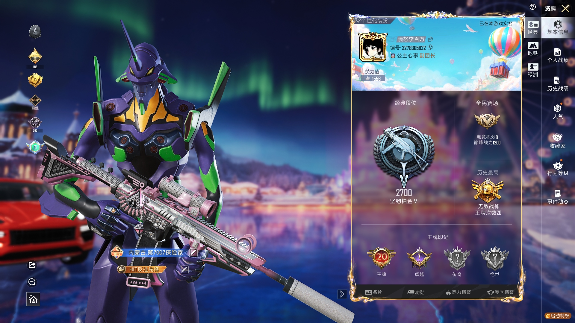 a4220/苹果v/热力值:98352,10粉装,12粉枪,2载具,17粉色战备,239套装,29