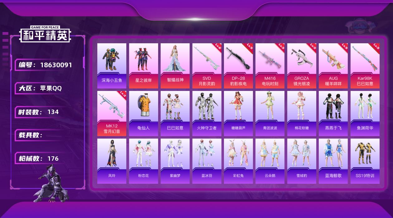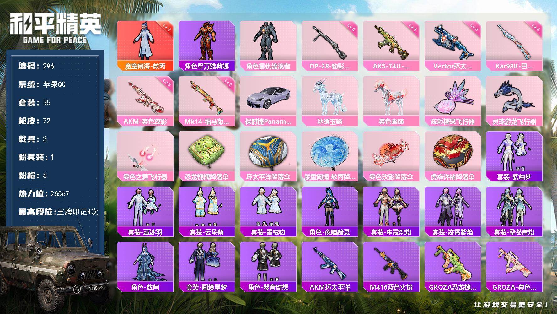 苹果 手Q-4粉装-6特效枪-0载具-0粉色飞行器-49718热力值-2王牌印