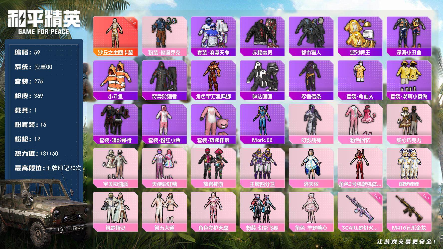20王牌印记-4粉装-6特效枪-323枪皮-250套装-1载具