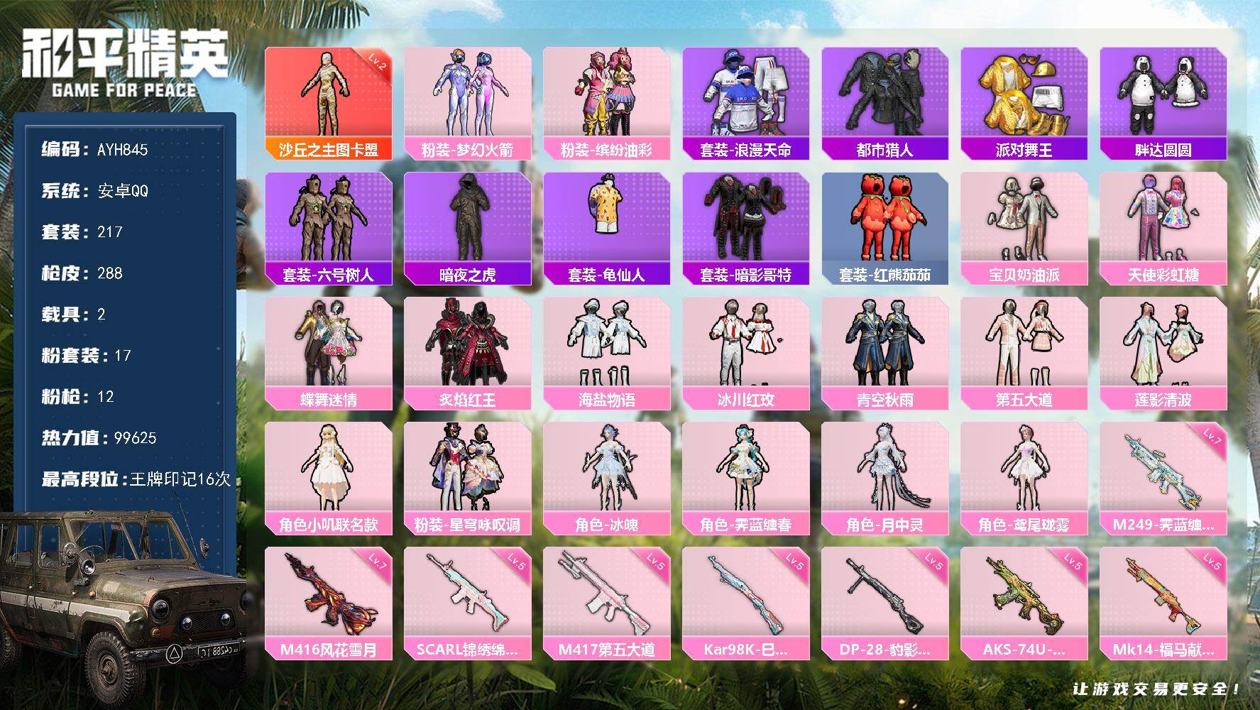 安卓 手Q-3神装-12粉装-22特效枪-6载具-13粉色飞行器-114240