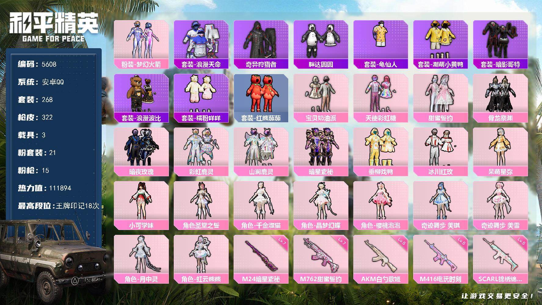 【6载具14粉装14特效枪 秒换绑不用等】 安卓Q区-126318热力值-24