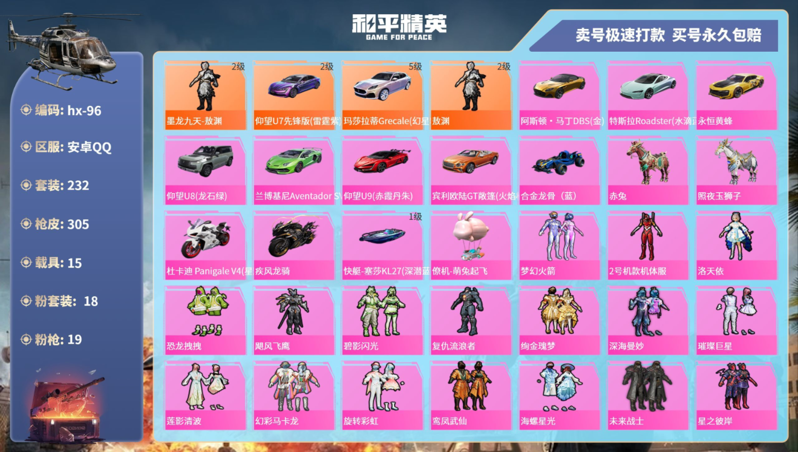 6载具-242套装-228枪皮-6红53粉14枪6车满级