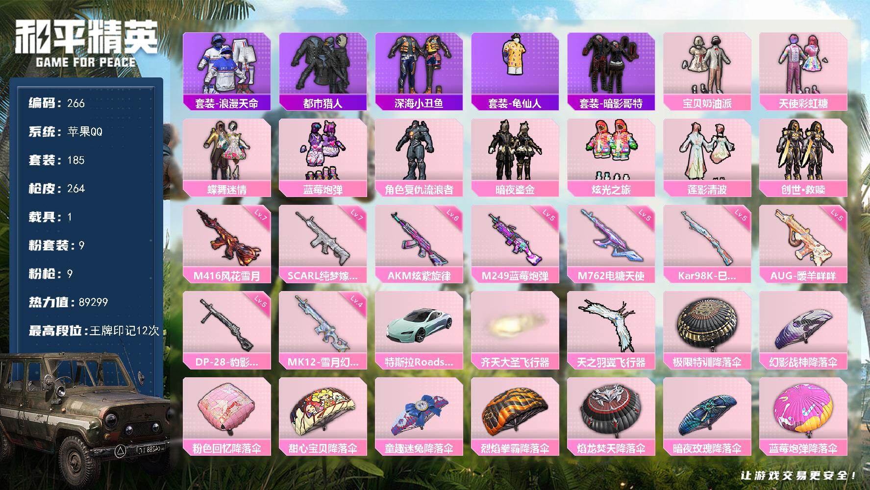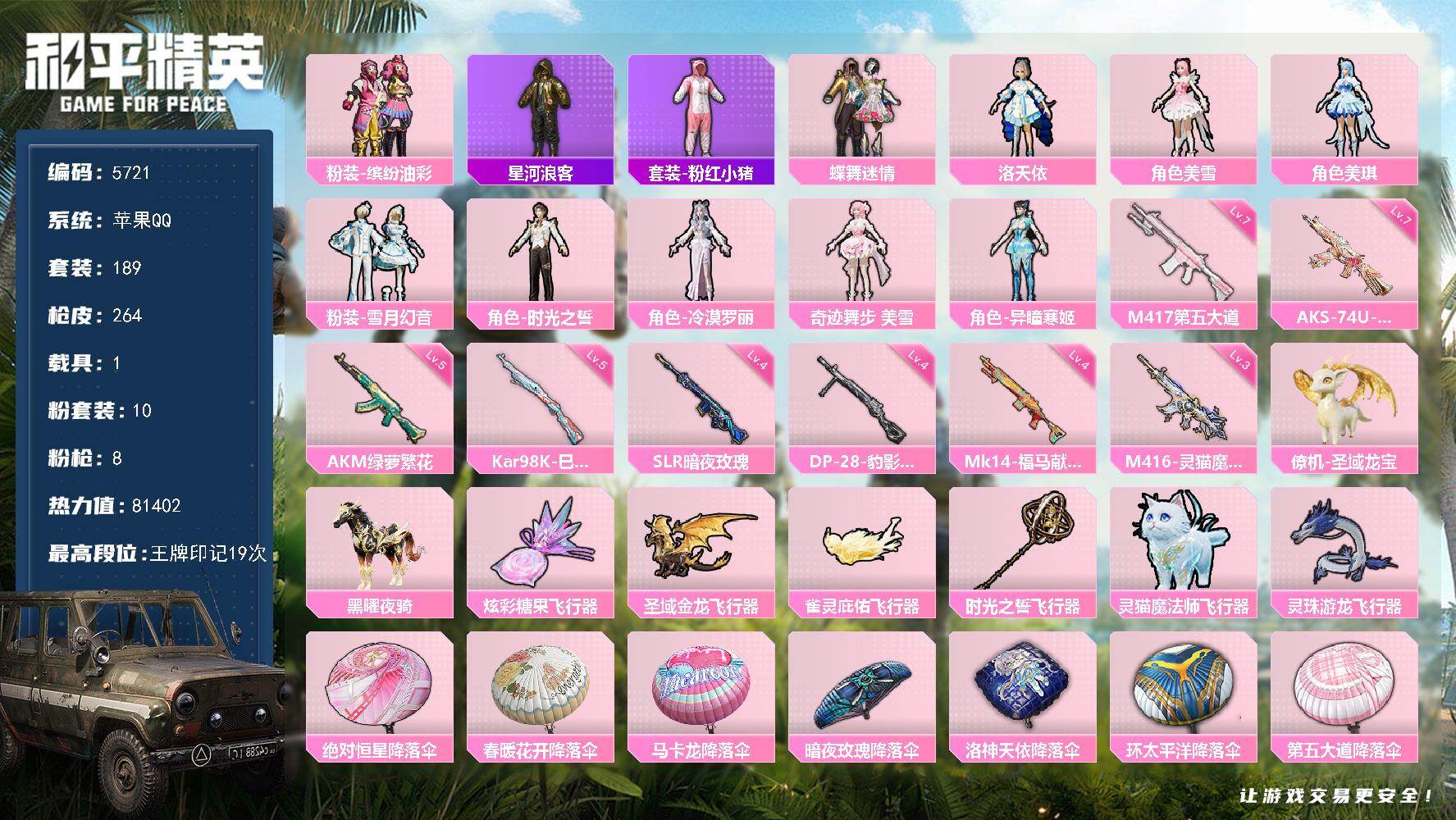 满级地铁苹果 手Q-10粉装-8特效枪-1载具-6粉色飞行器-81402热力值