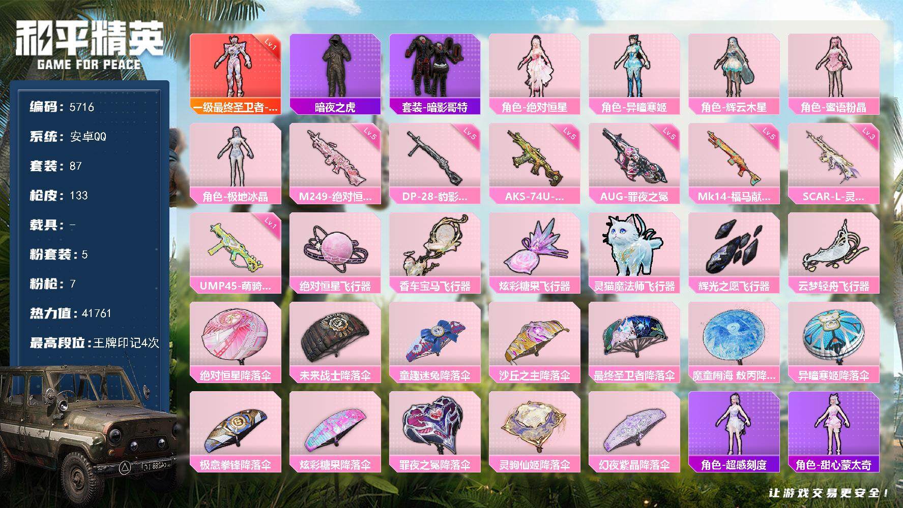 【3级红装5特效枪2粉装1载具 秒换绑不用等】 安卓Q区-32279热力值-5