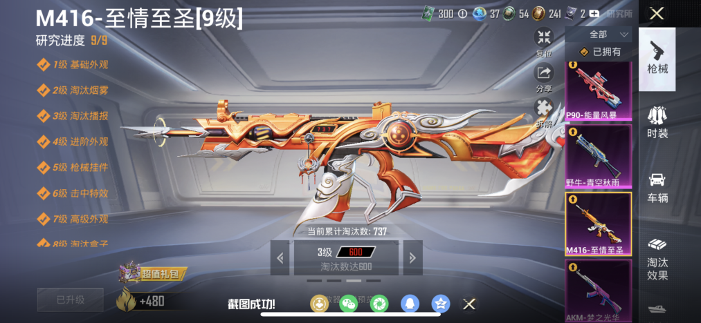 M1047235【地铁满天赋1载具-4粉装-9特效枪 M416-至情至圣[9级