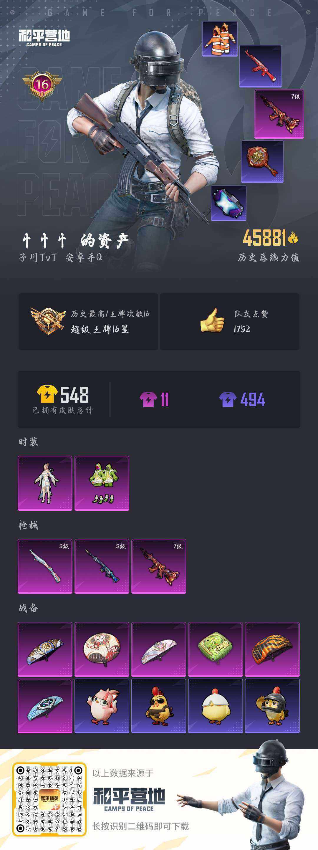 2粉装-3特效枪-0载具-0粉色飞行器-45881热力值-16王牌印记-115套装-148枪皮