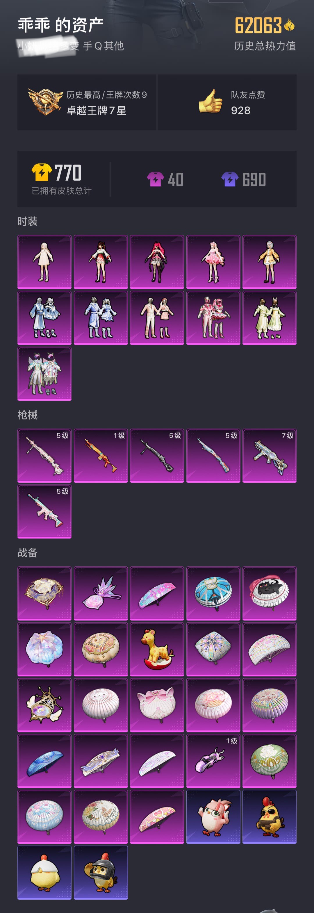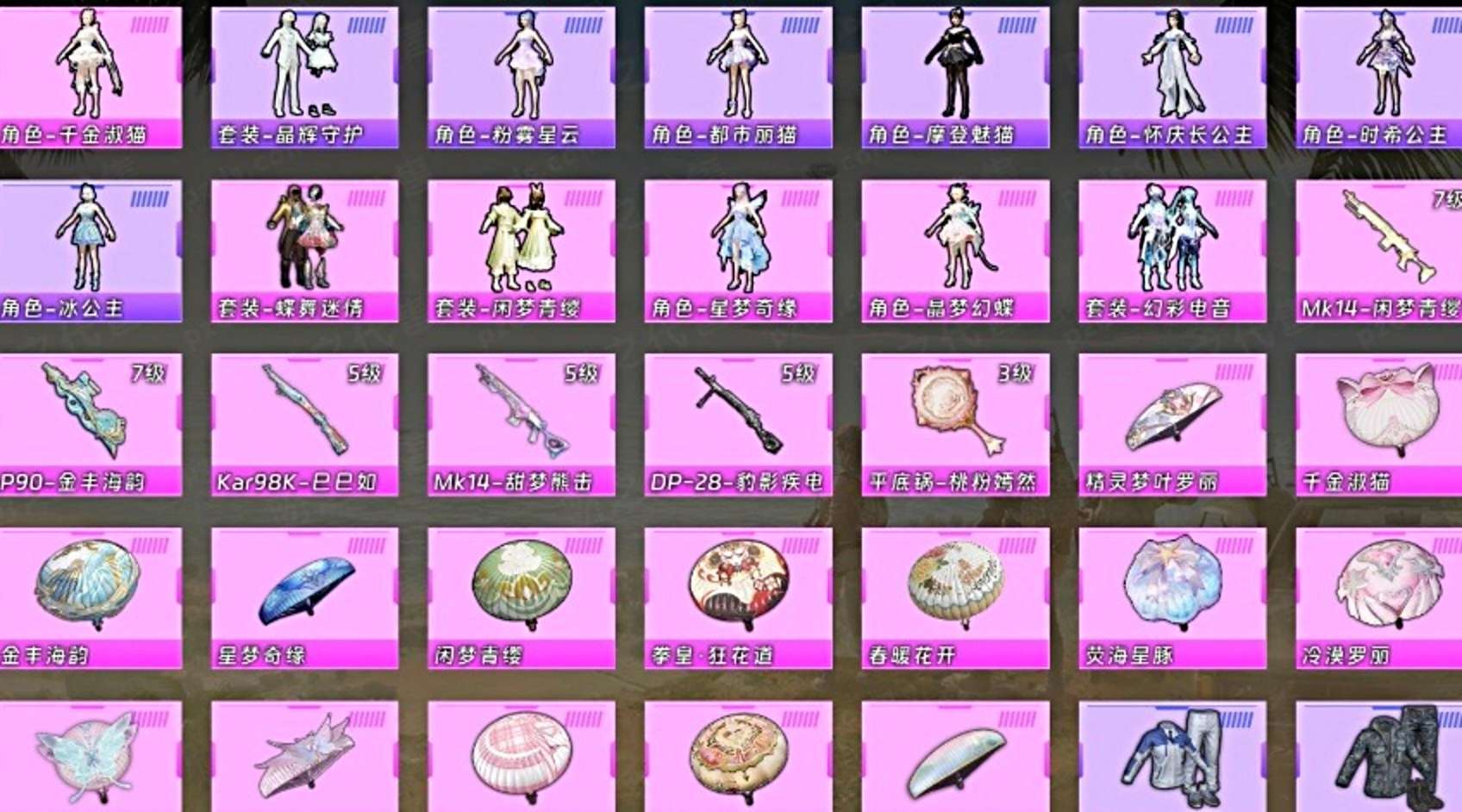 白菜价公主号【11粉装-6粉枪-0载具-4珍稀飞行器-165套装-184枪皮】热力值:61833