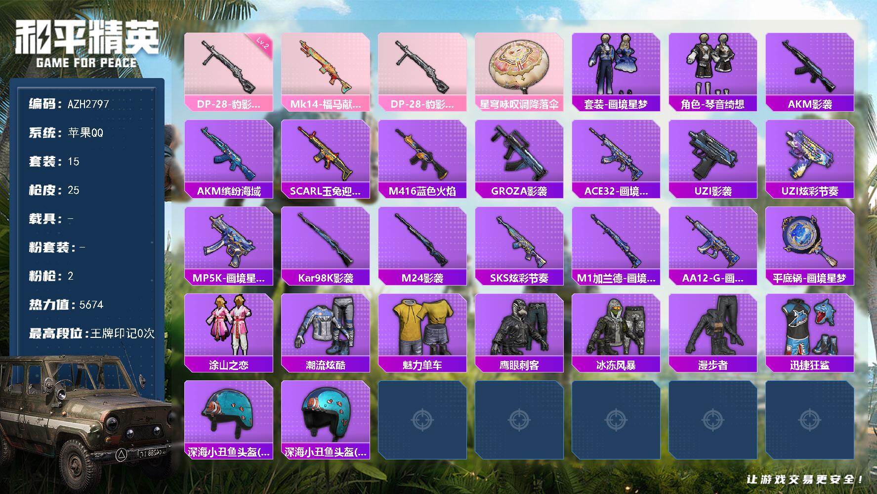 【AZH2797】苹果 手Q【漫步者 鹰眼刺客 迅捷狂鲨】0粉装-2特效枪-0