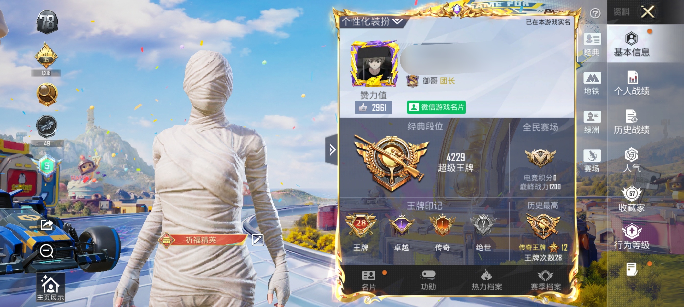 粉装2/粉枪8/套装62/枪皮91/热力值26117/历史最高段位:王牌印记1