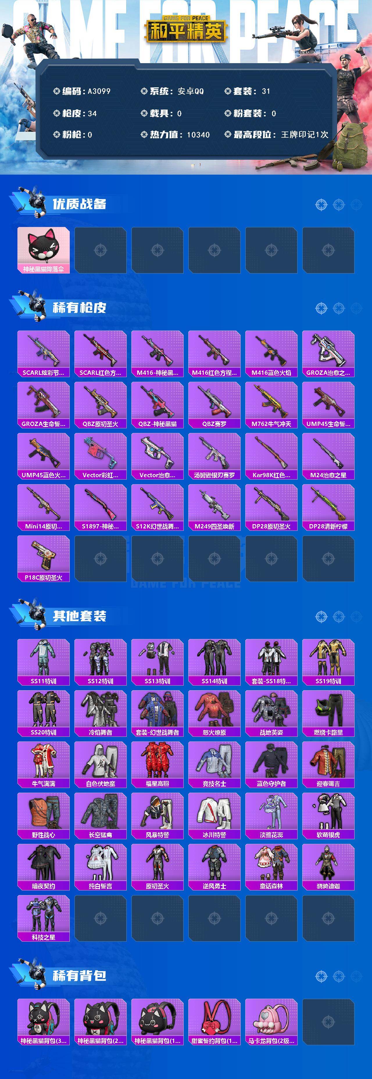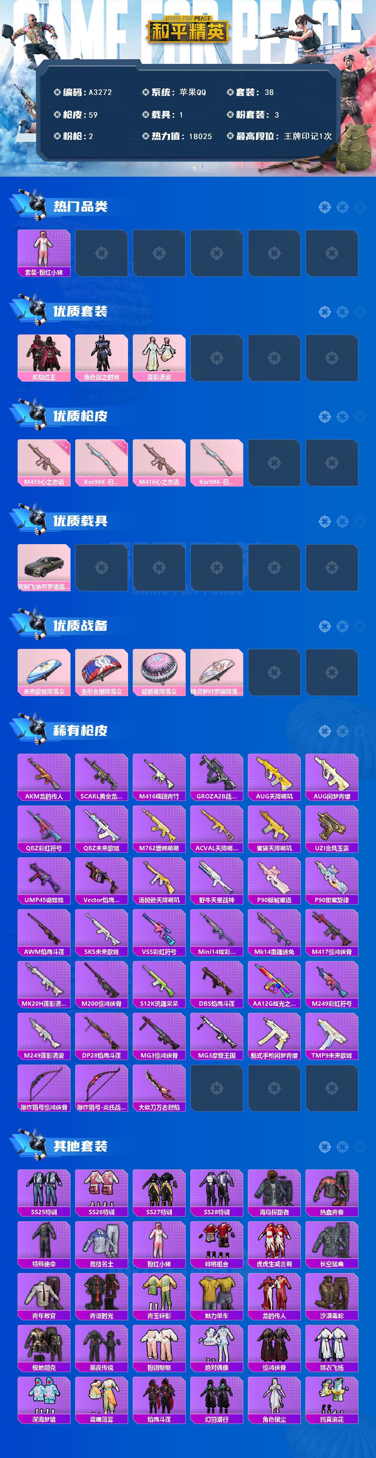 手Q-0粉装-0特效枪-0载具-0粉色飞行器-10340热力值-1王牌印记
