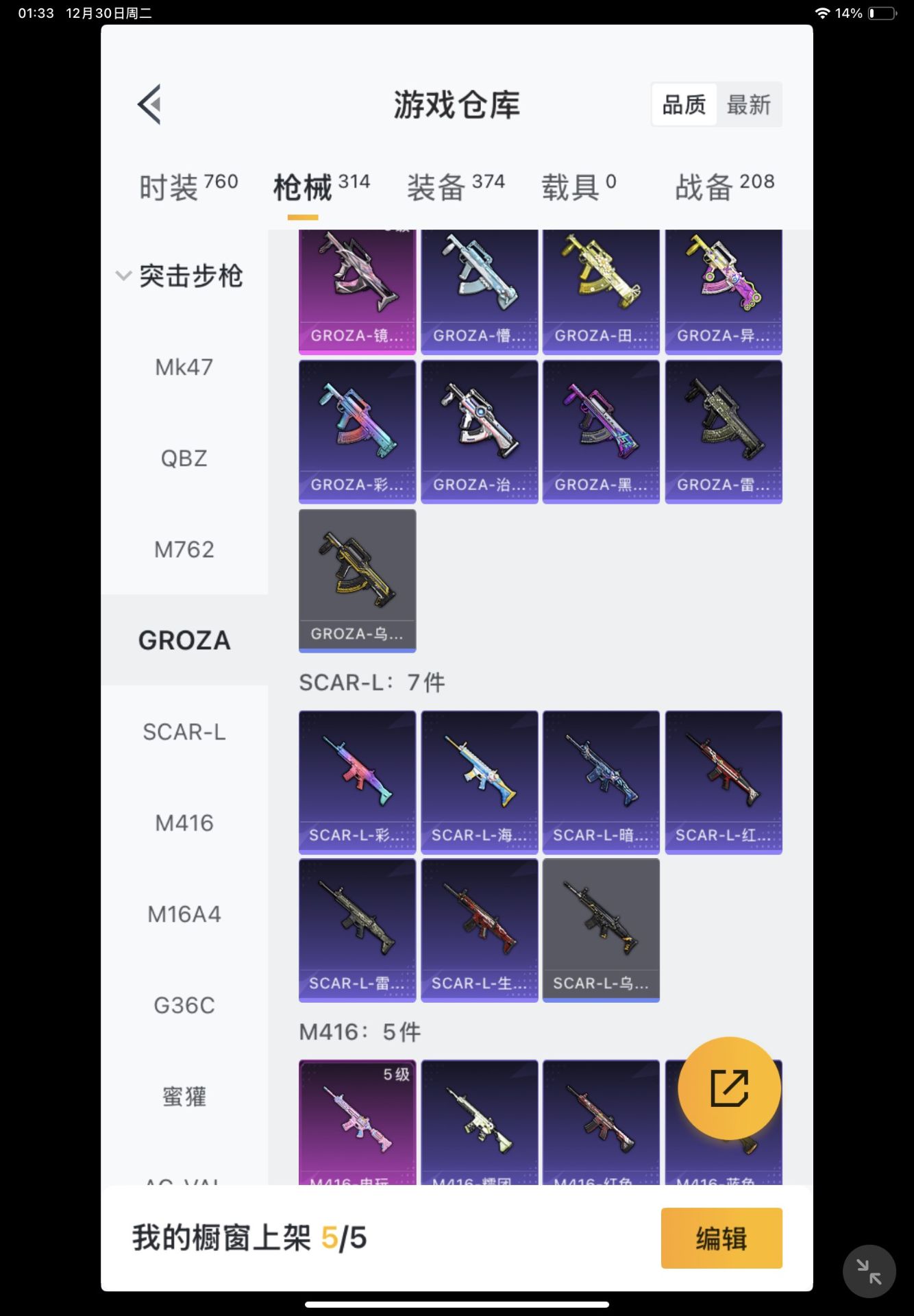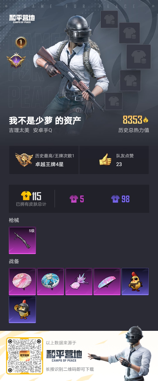 1王牌印记-4粉装-3特效枪-106枪皮-127套装-1载具