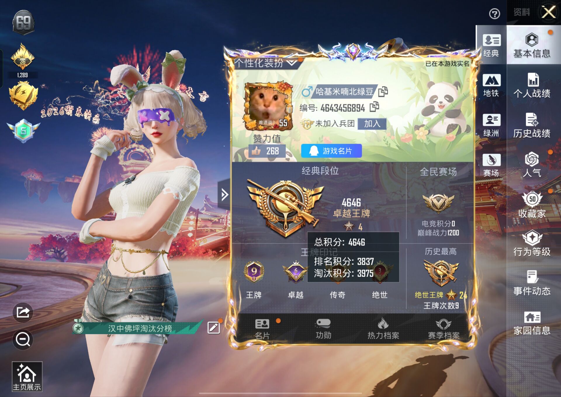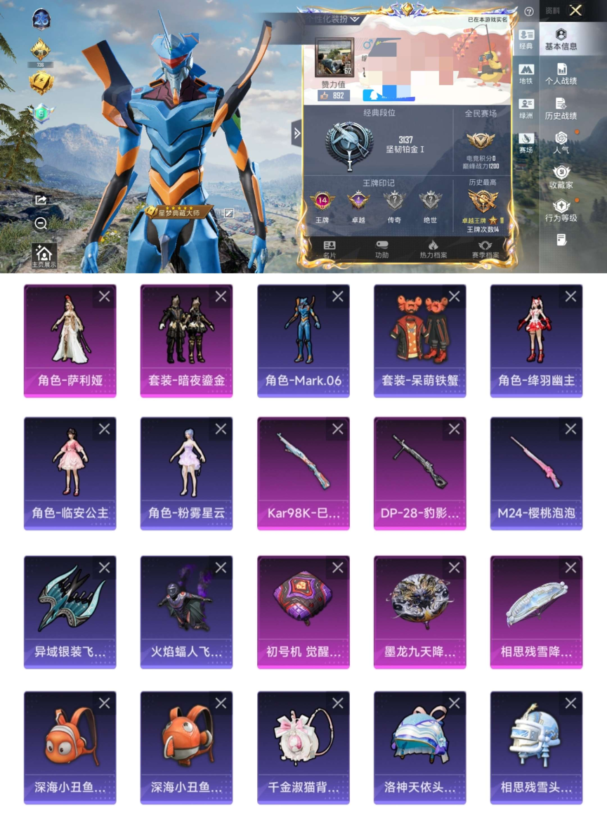 当前段位:黄金3!游戏等级:59!单粉妆,三特效!代多件质量军需套
