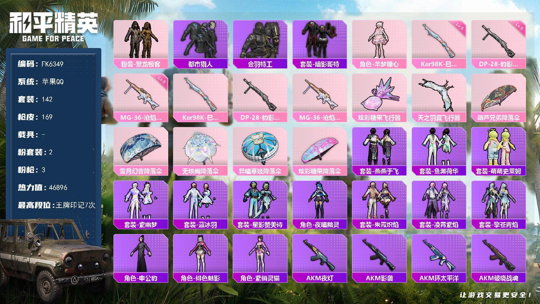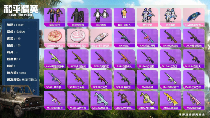 【FK6349】142套装/枪械3/装备183/战备121/王牌印记7/热力值
