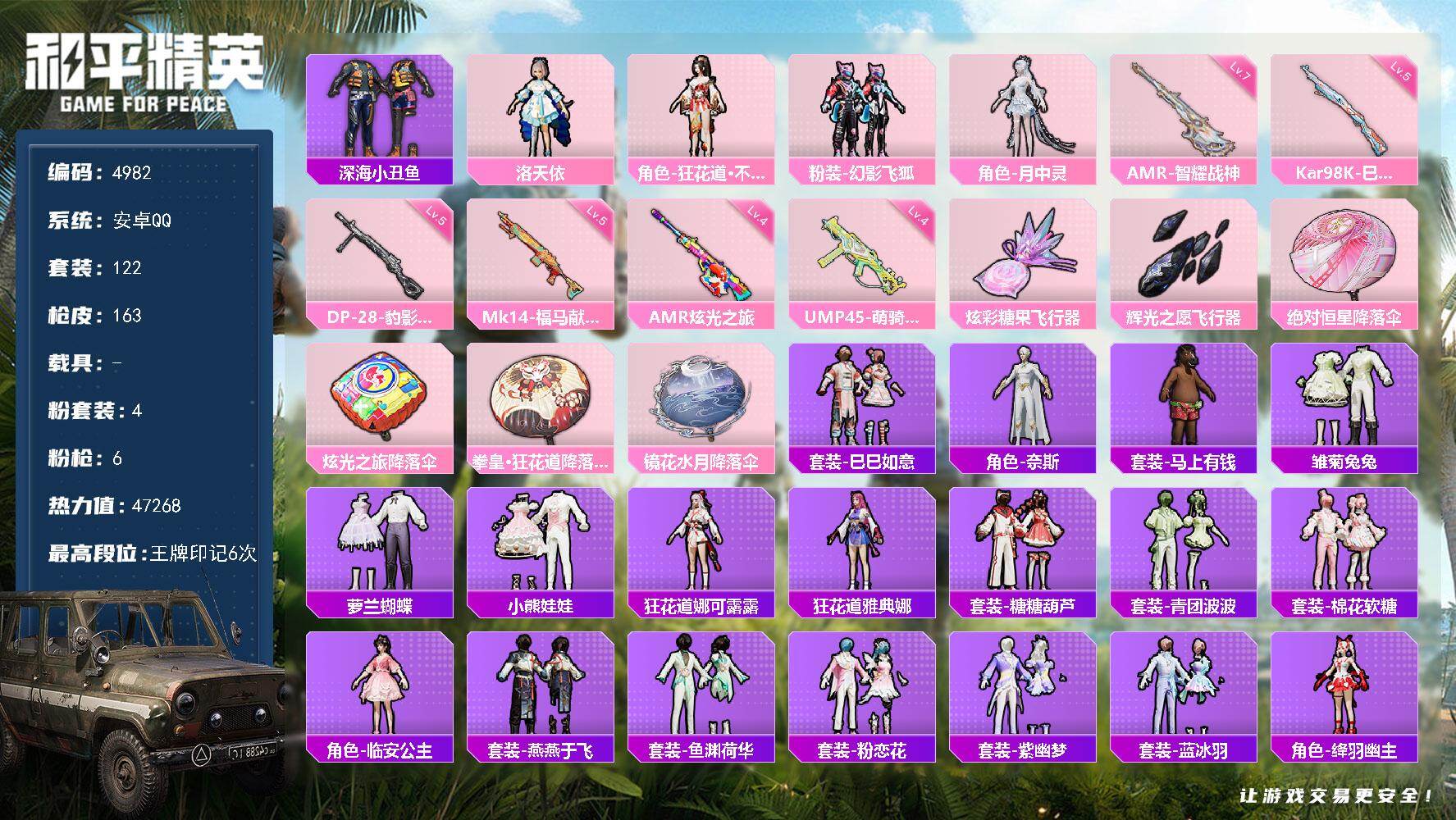 安卓 手Q-5粉装-6特效枪-0载具-2粉色飞行器-61747热力值-11王牌