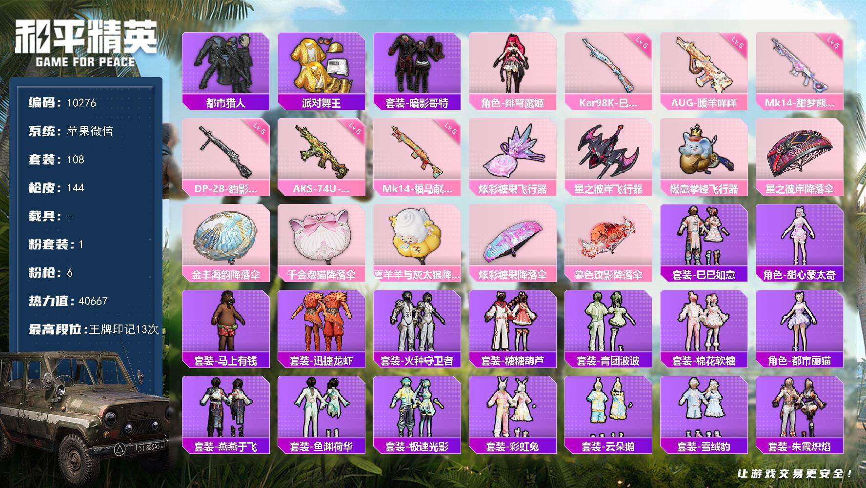 苹果 微信-2粉装-2特效枪-0载具-1粉色飞行器-21426热力值-5王牌印