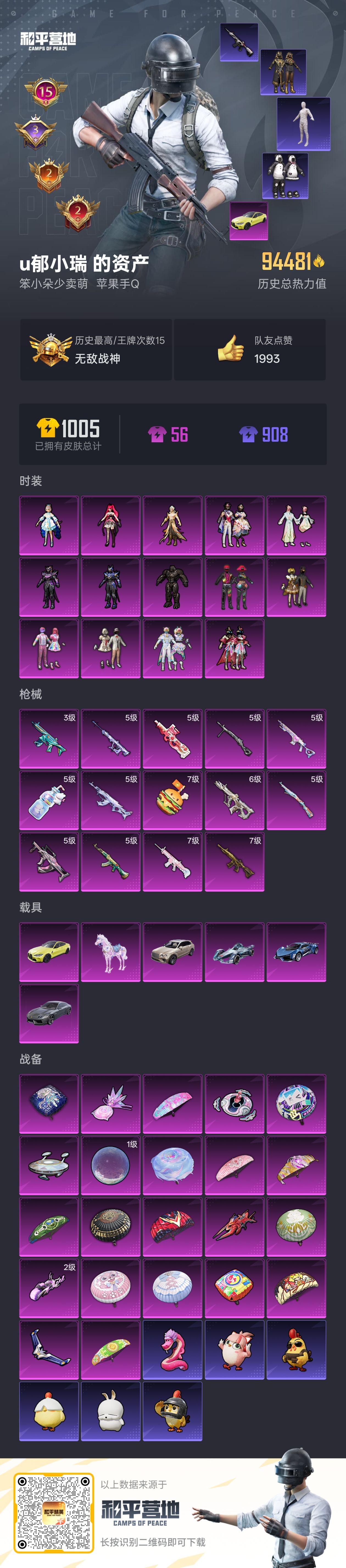 手Q-3粉装-4特效枪-0载具-2粉色飞行器-33981热力值-5王牌印记