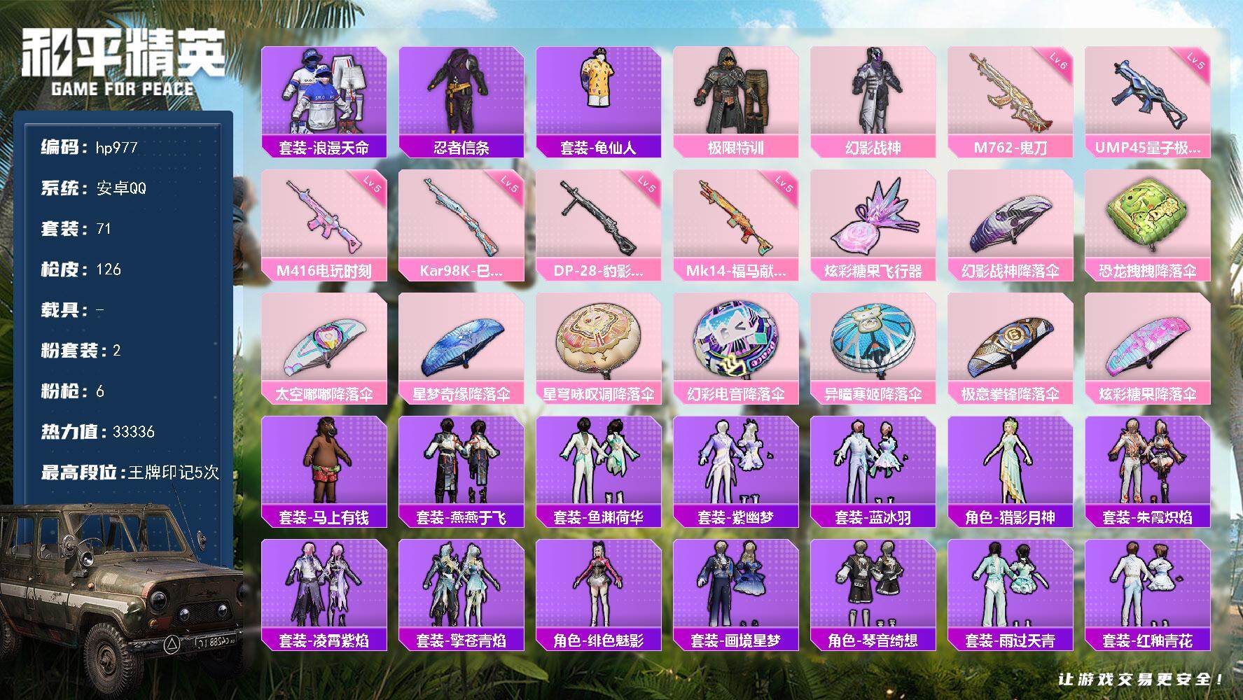 可二次实名【7特效枪2粉装】 安卓V区-33325热力值-2印记-62套装-1