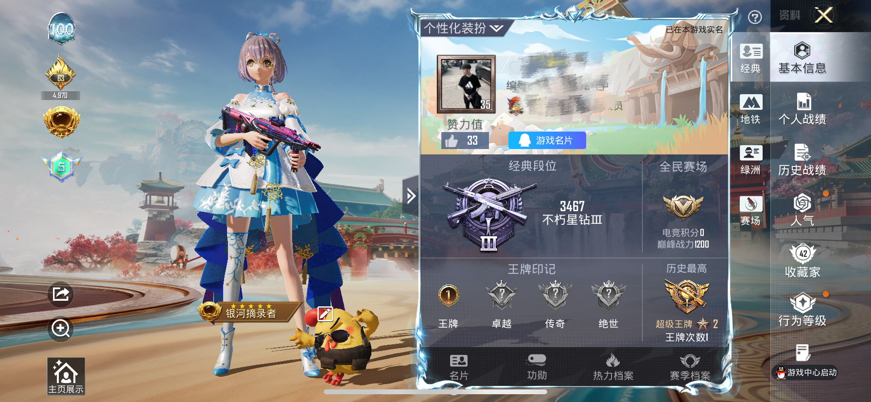 实名: 可修改 时装数: 192 载具数: 1 枪械数: 86 战备数: 45