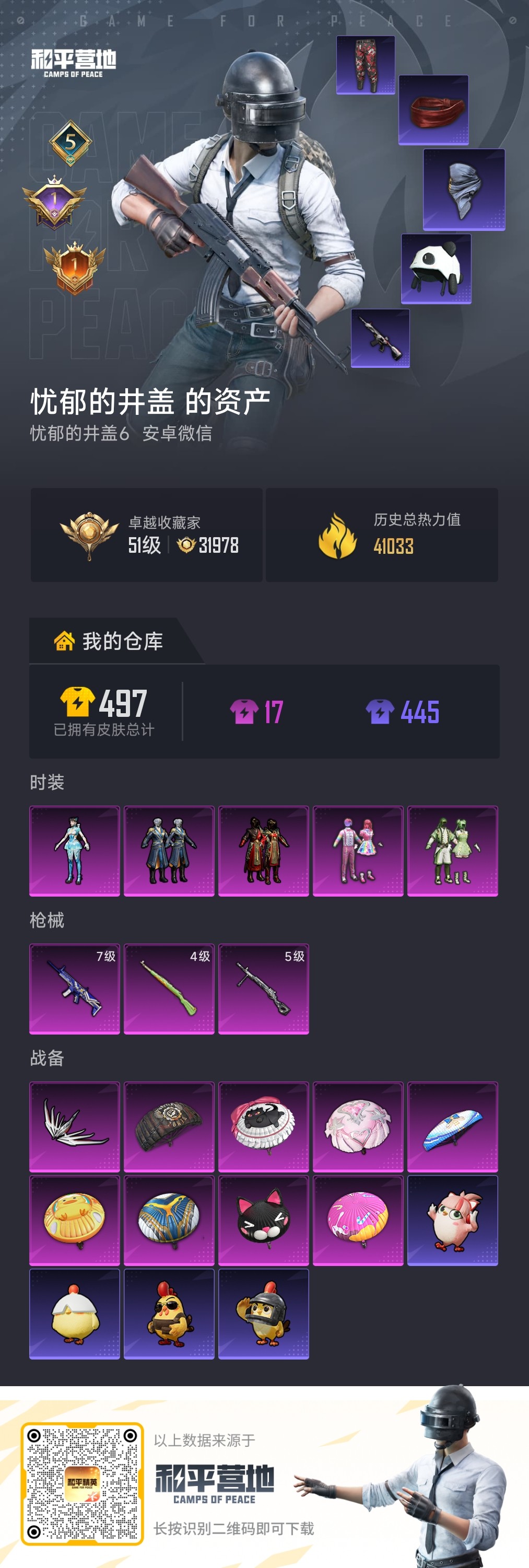 S1老号,恶魔头,攀登者三口罩,老皮肤都有尤其是地铁运气特别好出过好几把现在号上传世武器没了装备也有