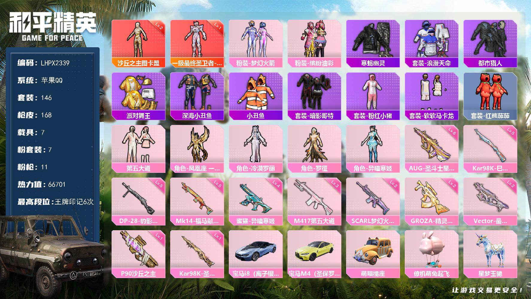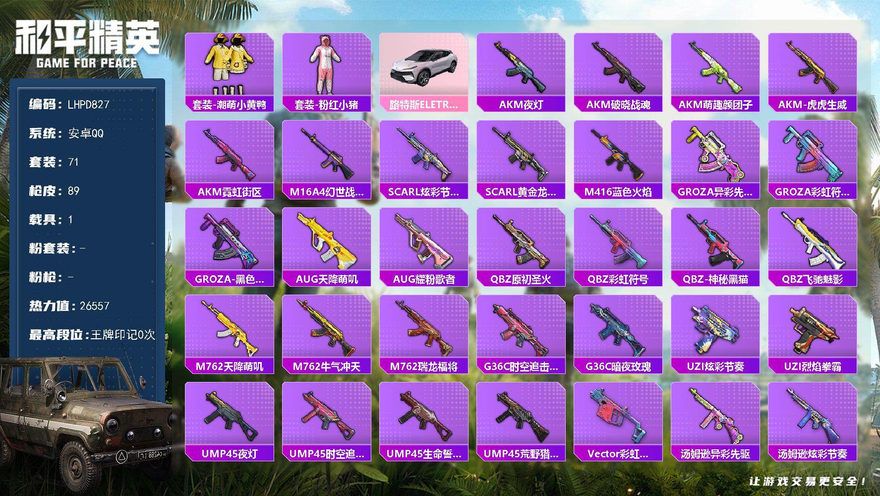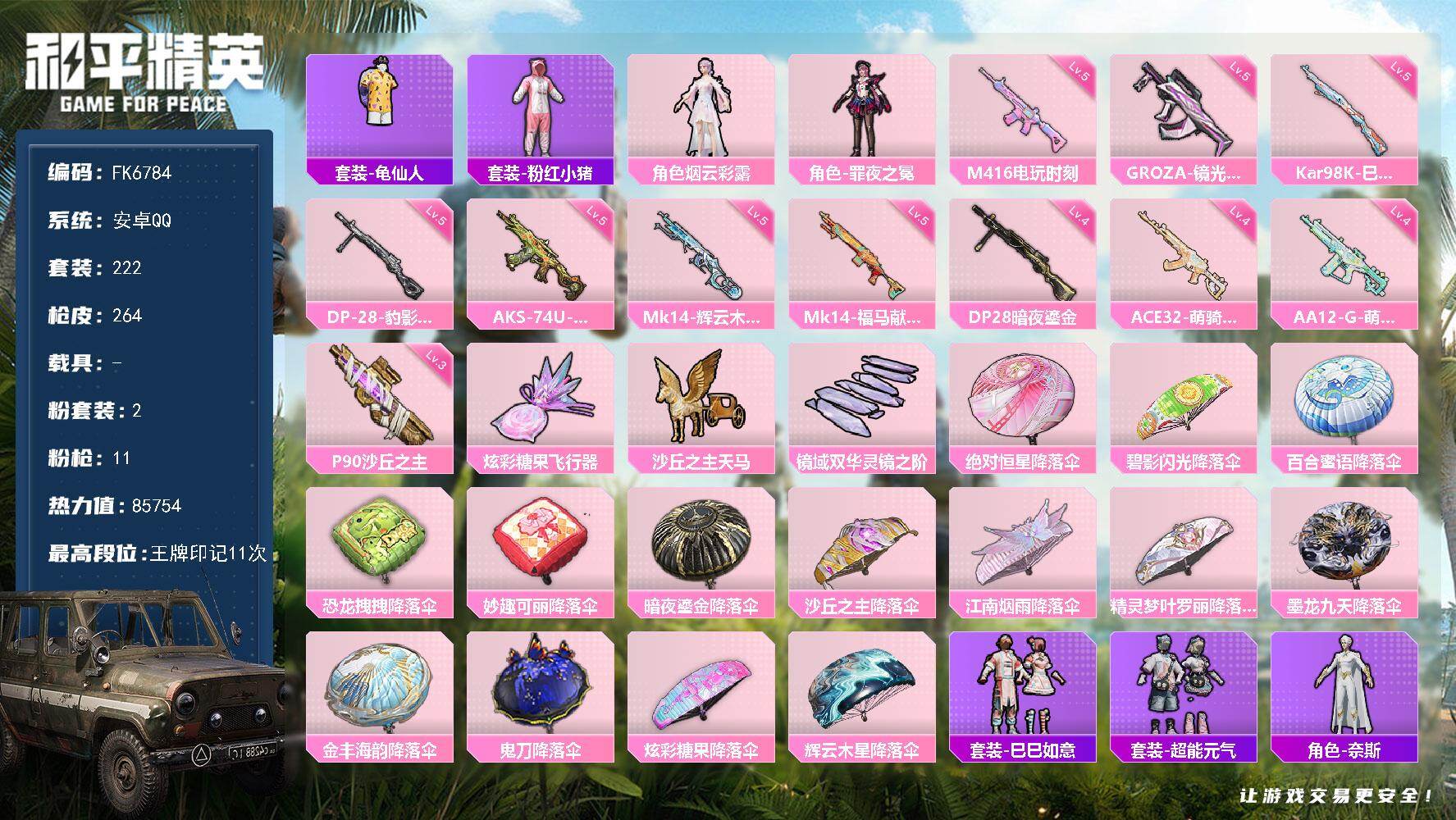 【店主推荐捡漏号!可直接换绑】安卓 手Q-0粉装-0特效枪-1载具-0粉色飞行