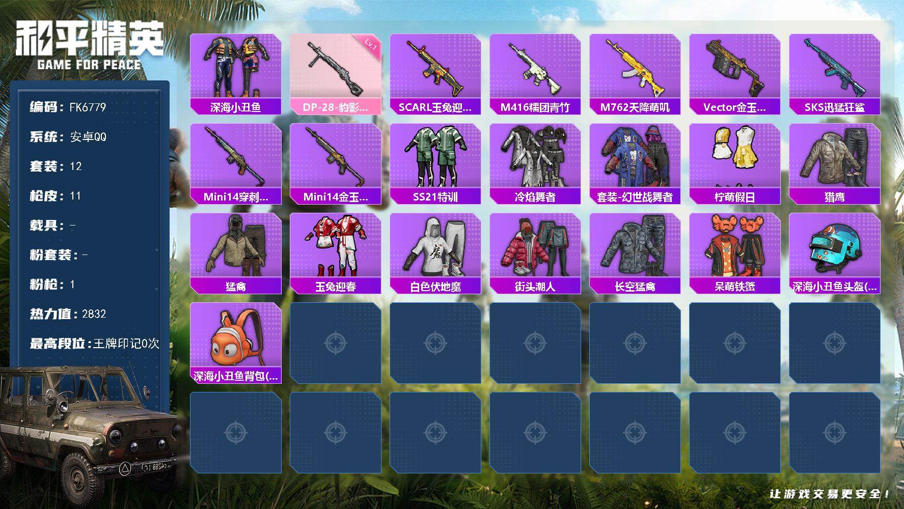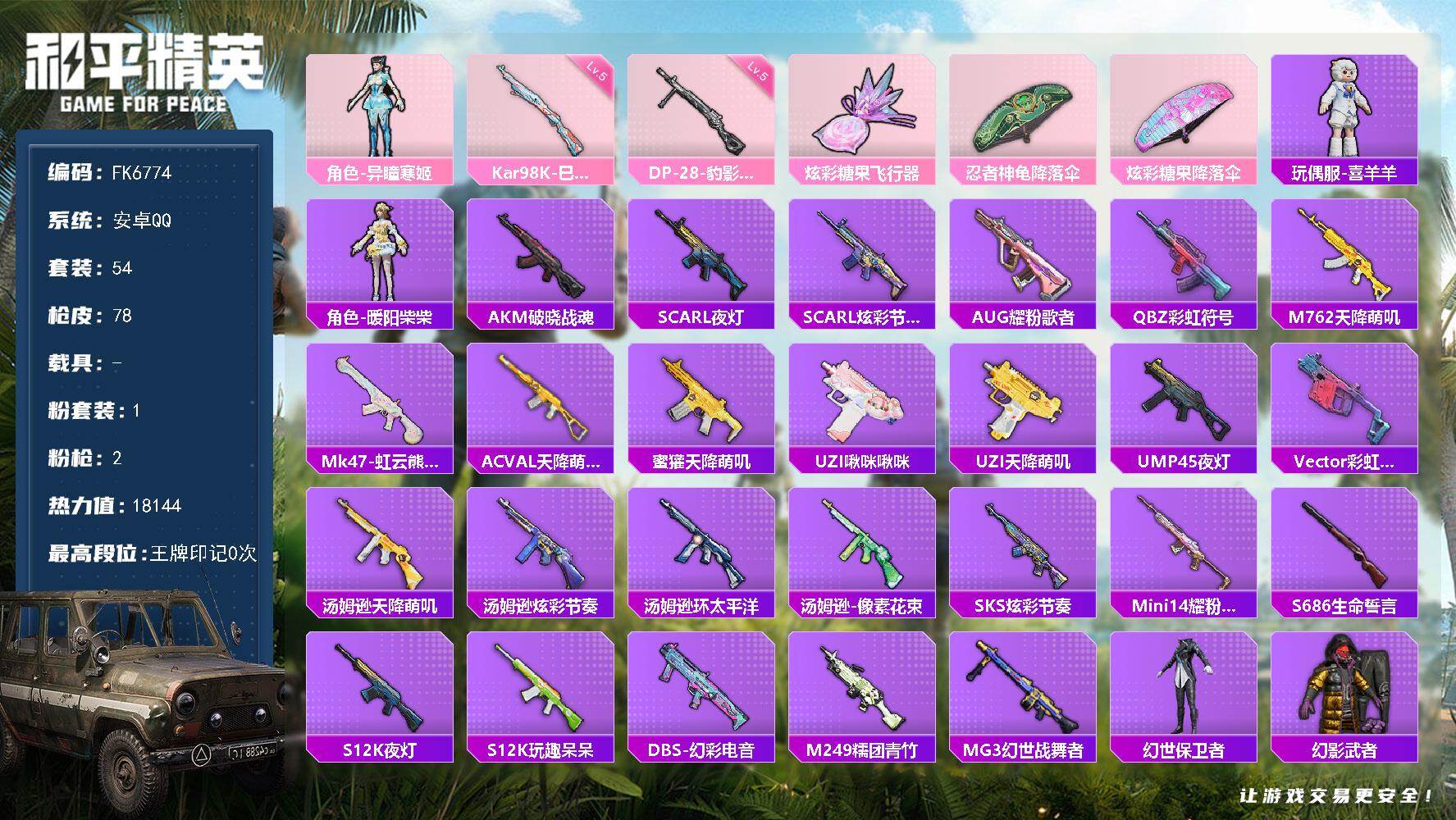 【FK6777】166套装/枪械7/装备233/战备138/王牌印记5/热力值