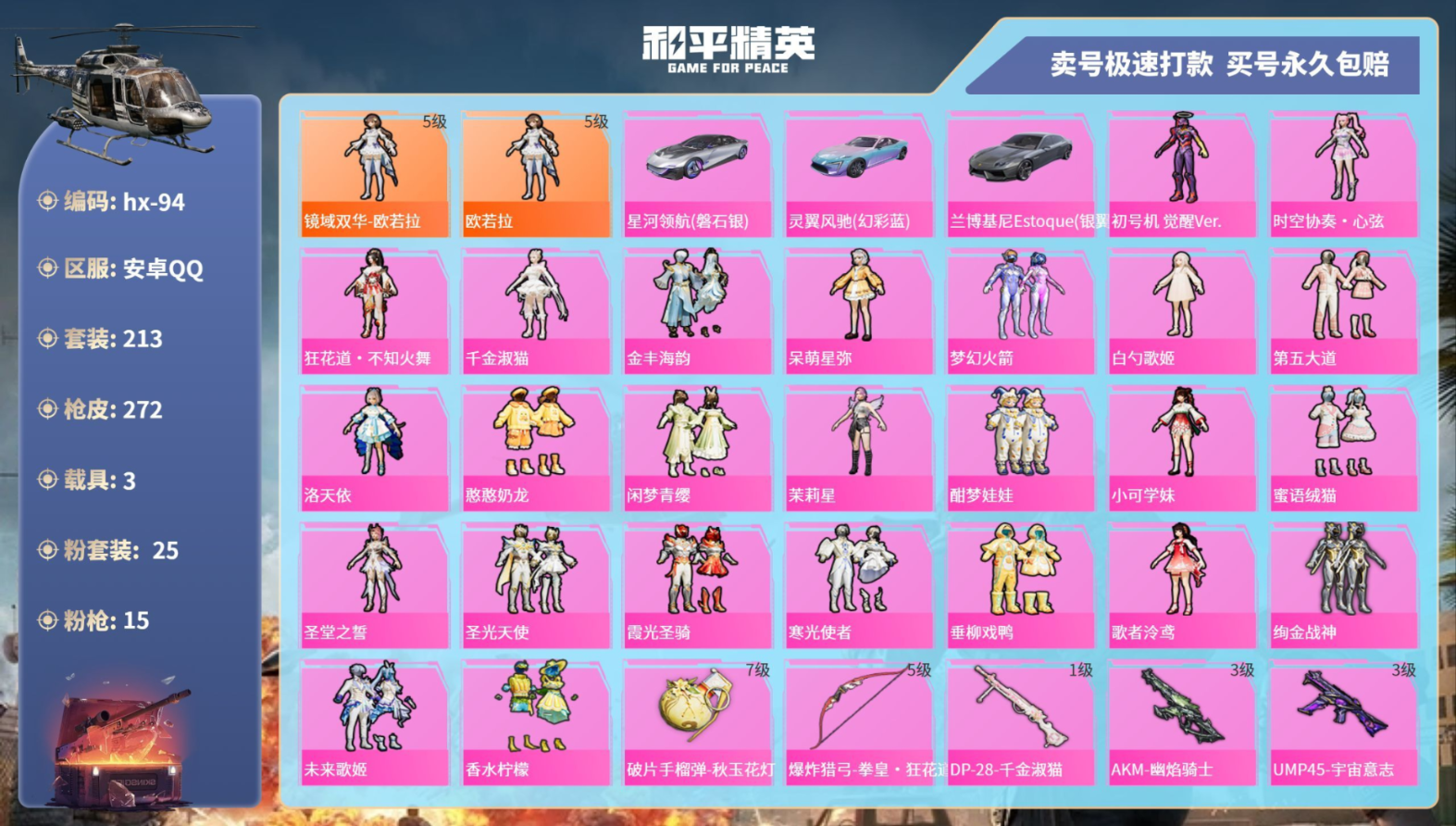 3载具-213套装-272枪皮-1红25粉15枪3车5级