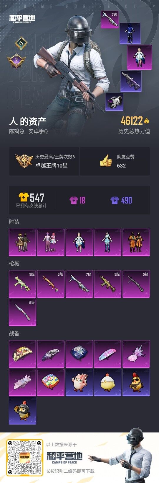 149套装/枪械9/装备272/战备153/王牌印记19/热力值70165/七级