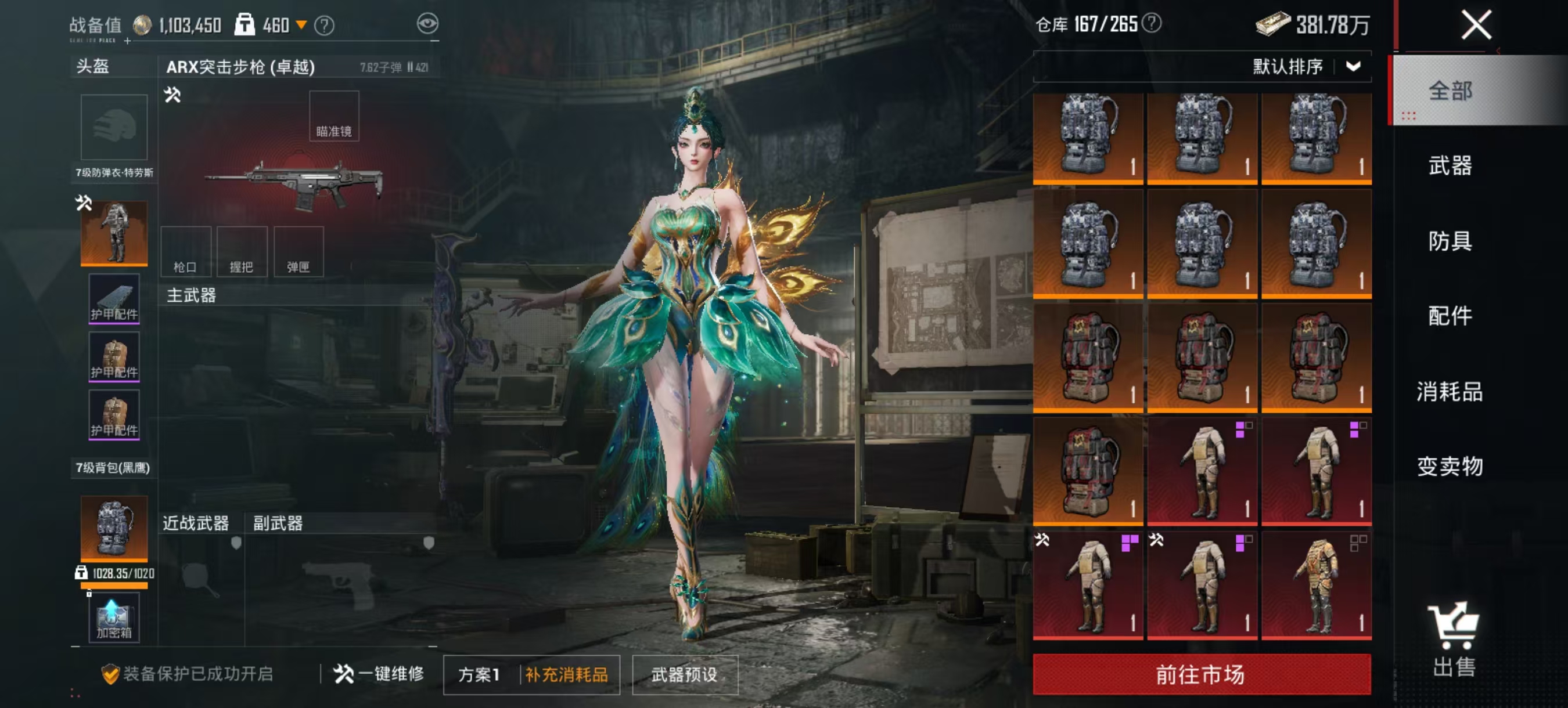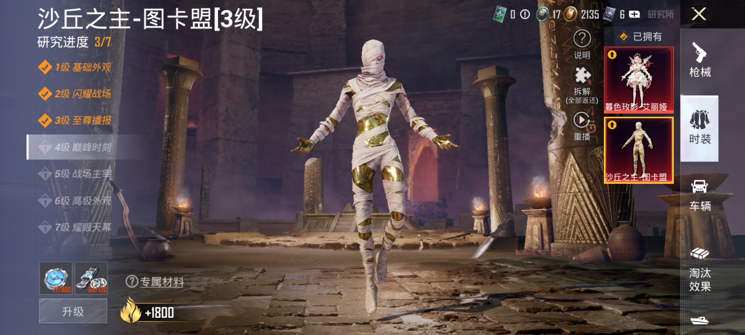 265套装/枪械26/装备584/载具3/战备301/王牌印记21/热力值/六级