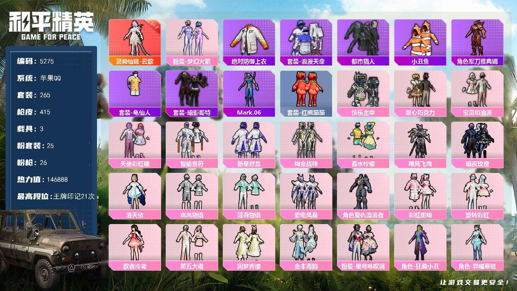 苹果手Q-21王牌印记-47粉装-27特效枪-6载具-热力值-3