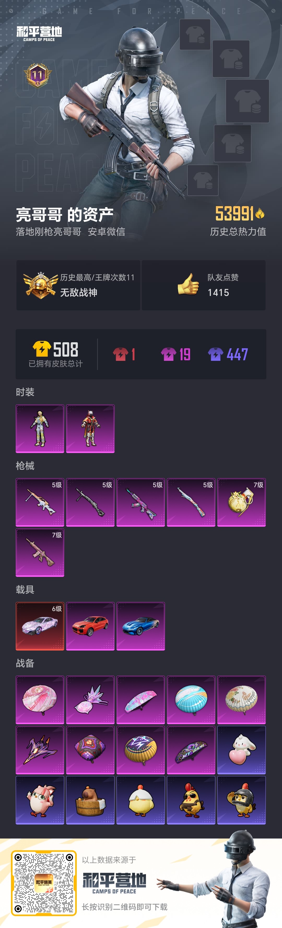 hs57011 安卓手Q-19王牌印记-有战神框-34粉装-15特效枪-1载具-132472热力值-