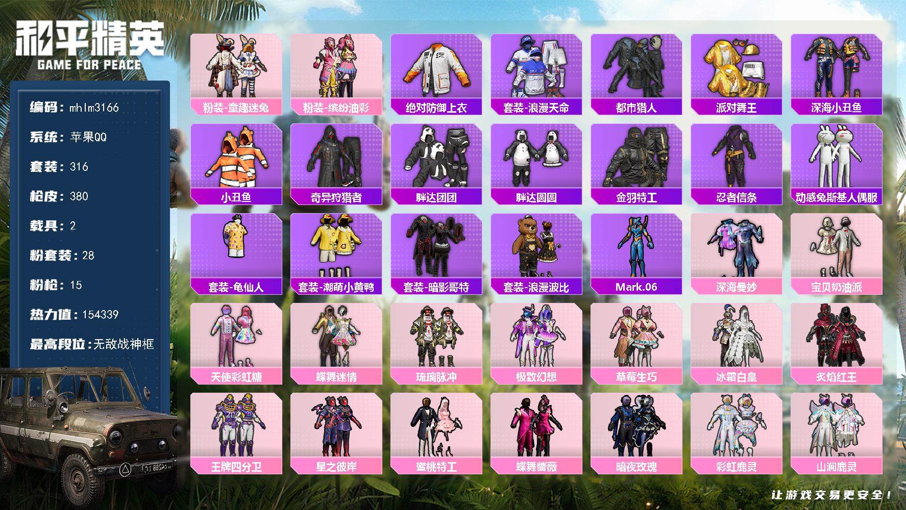 【mhlm3166】苹果 手Q-无敌战神框-28粉装-15特效枪-2载具-9粉