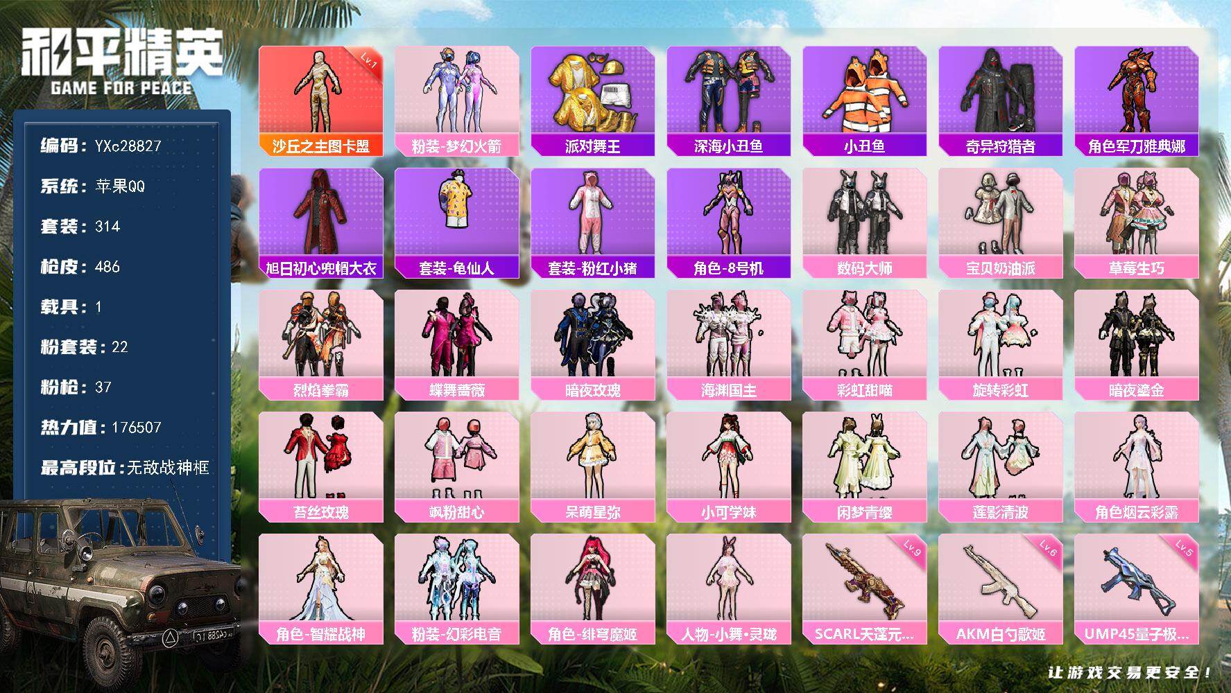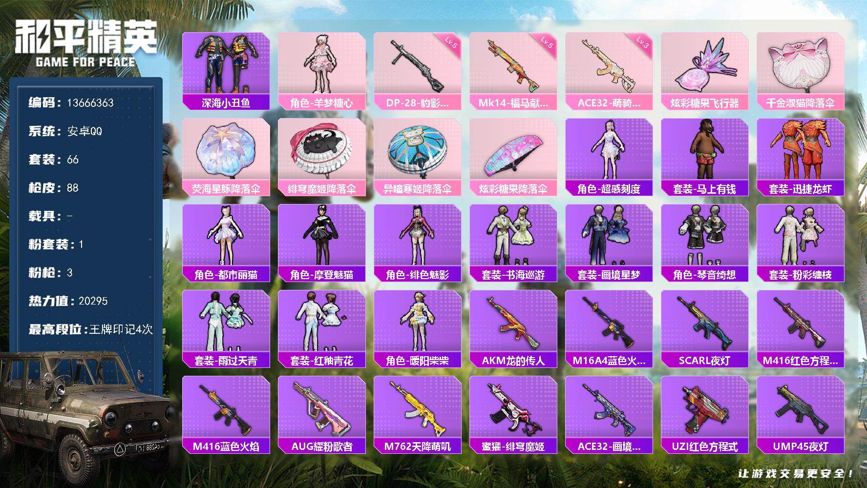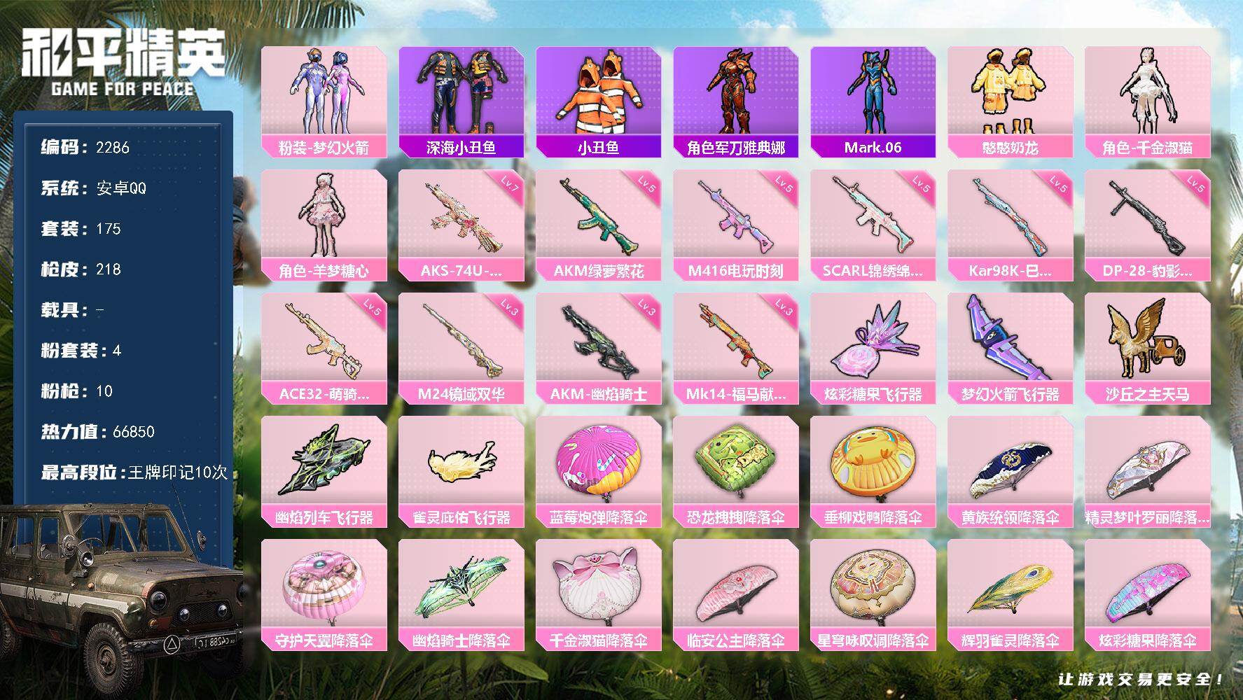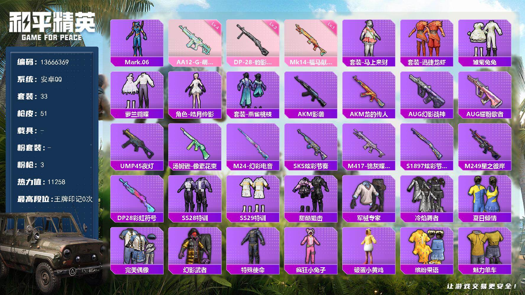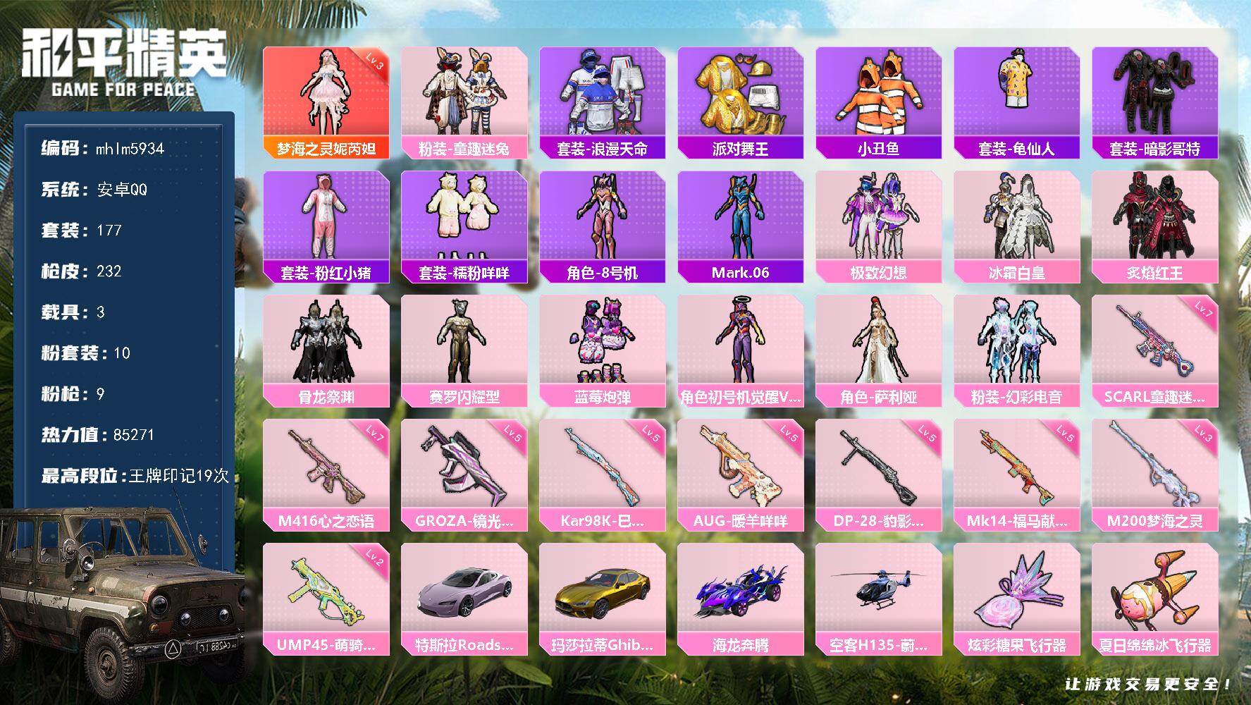 安卓 手Q-3粉装-6特效枪-0载具-1粉色飞行器-48527热力值-14王牌