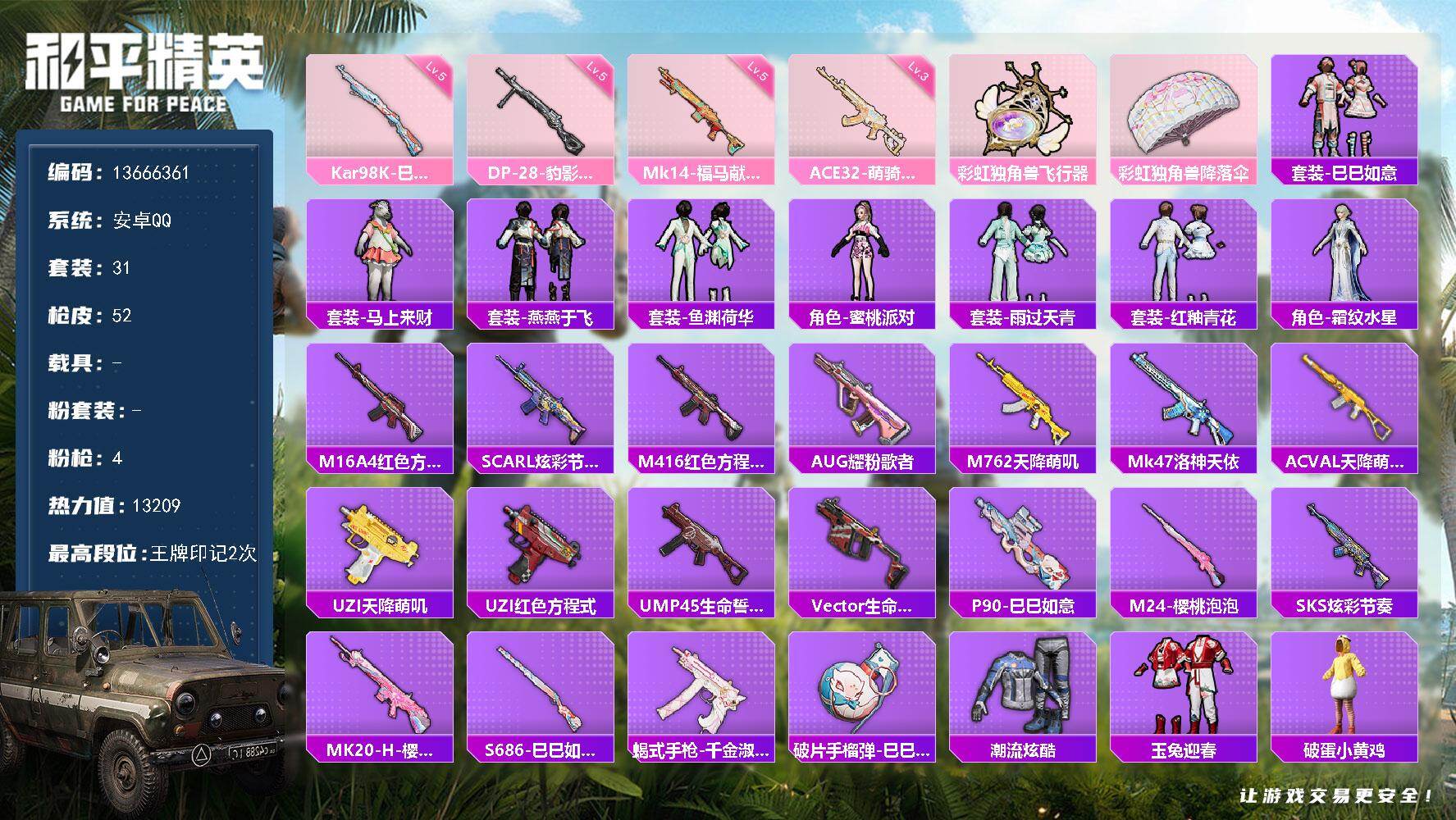 31套装/枪械4/装备54/战备34/王牌印记2/热力值13209/三级ACE