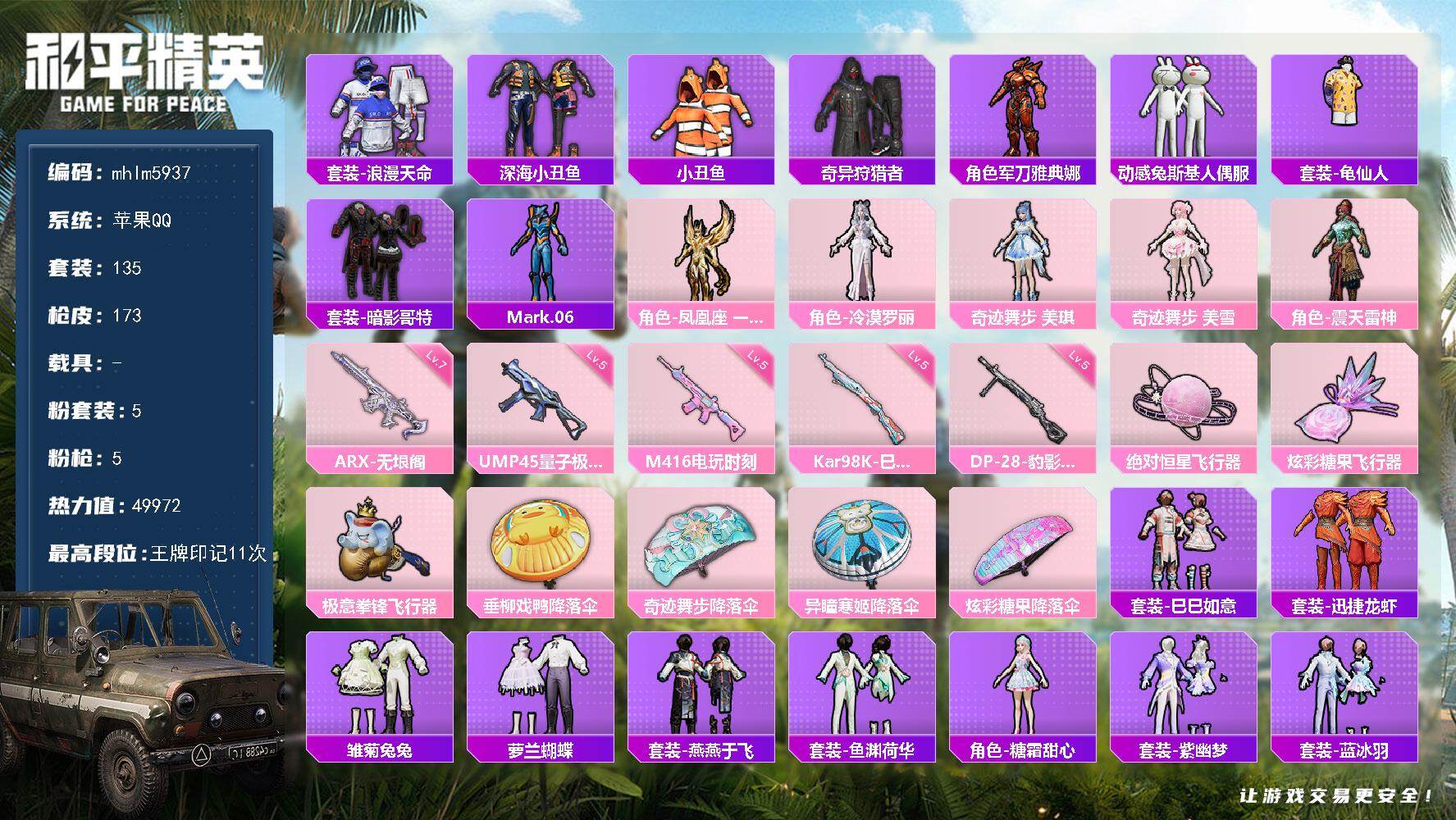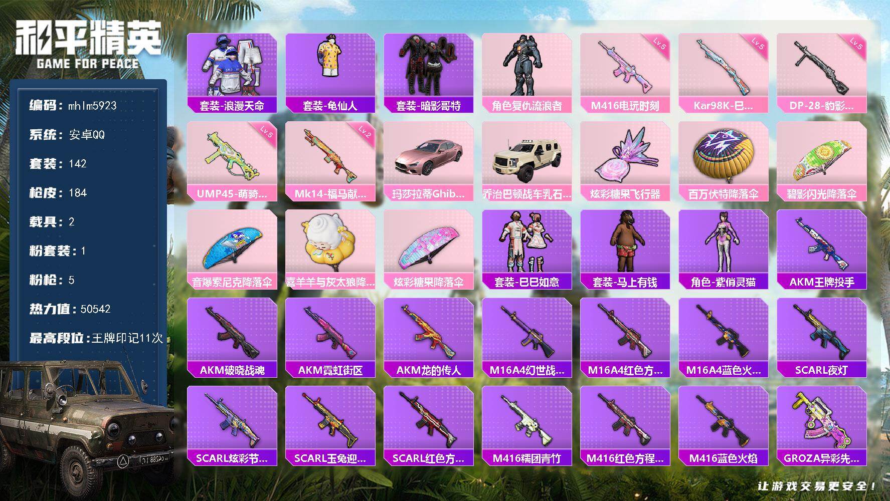 【mhlm5939】安卓 手Q-3神装-14粉装-14特效枪-7载具-15粉色