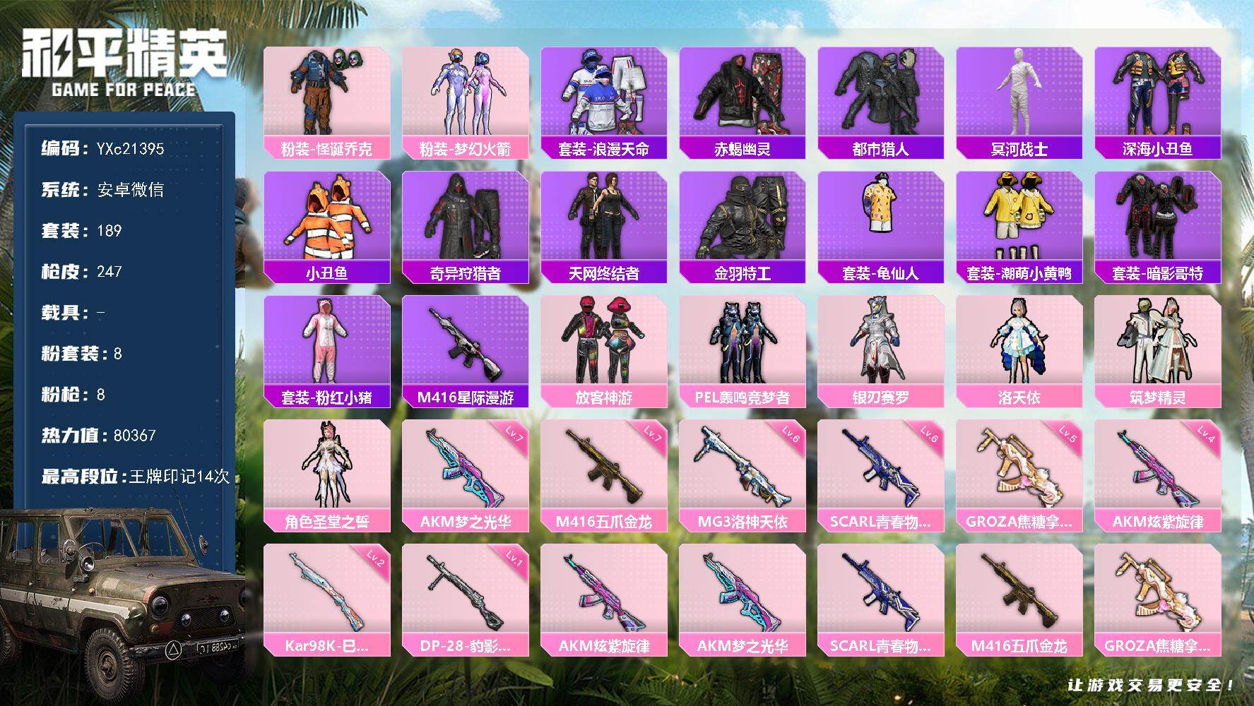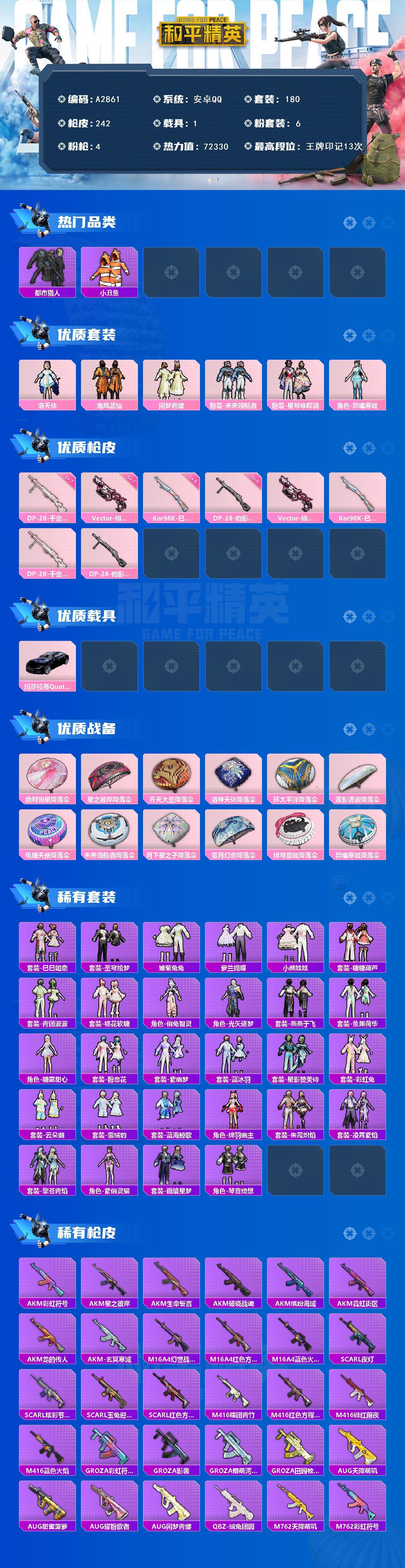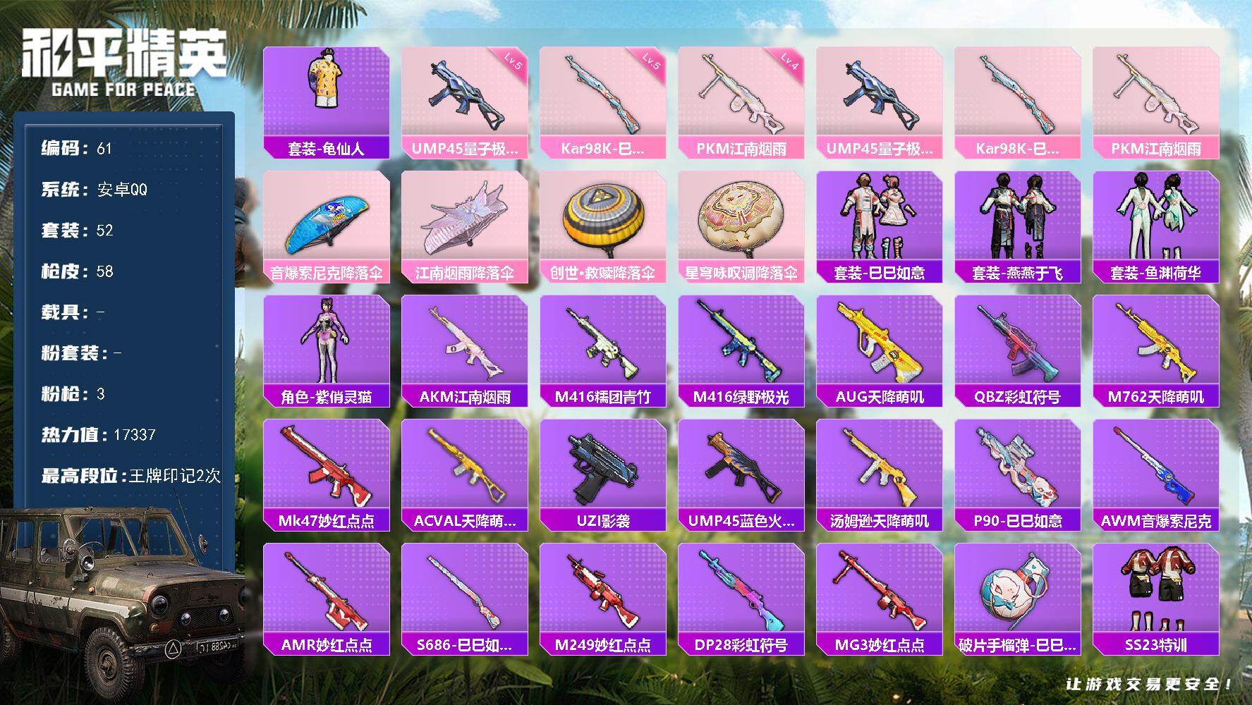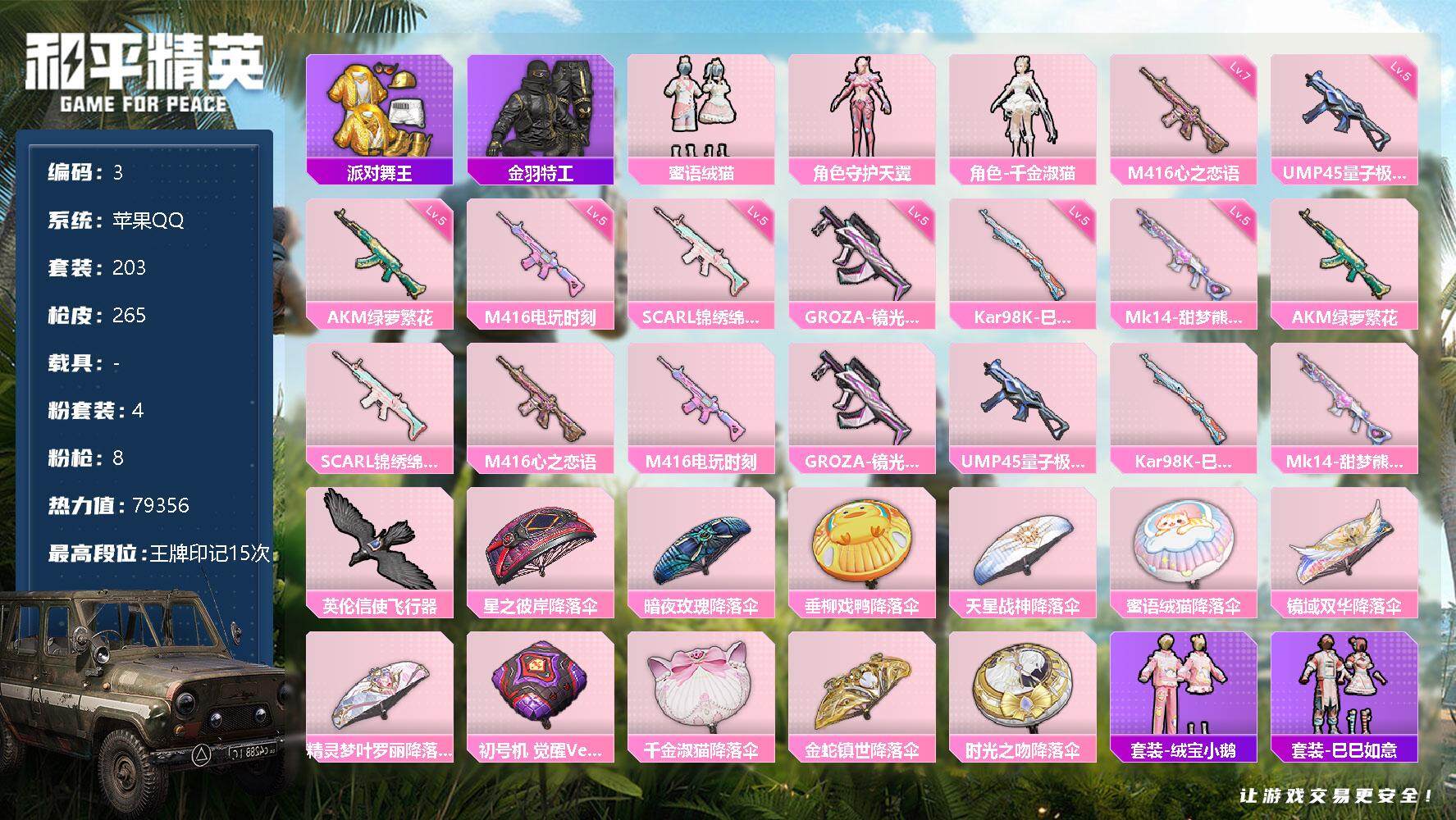 实名: 可修改 时装数: 145 载具数: 1 枪械数: 227 战备数: 1
