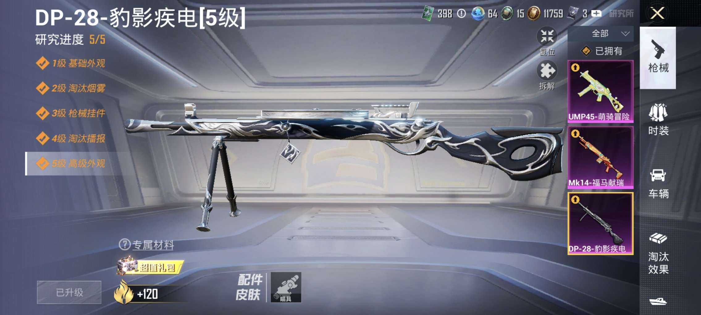可二次 2粉装3特效枪-28508热力值-68套装-113枪皮 【2粉装】 星之彼岸 幻彩电音【3特效枪】 Mk14-福马献瑞(5级) Kar98K-巳巳如意(5级) DP-28-豹影疾电(5级)
