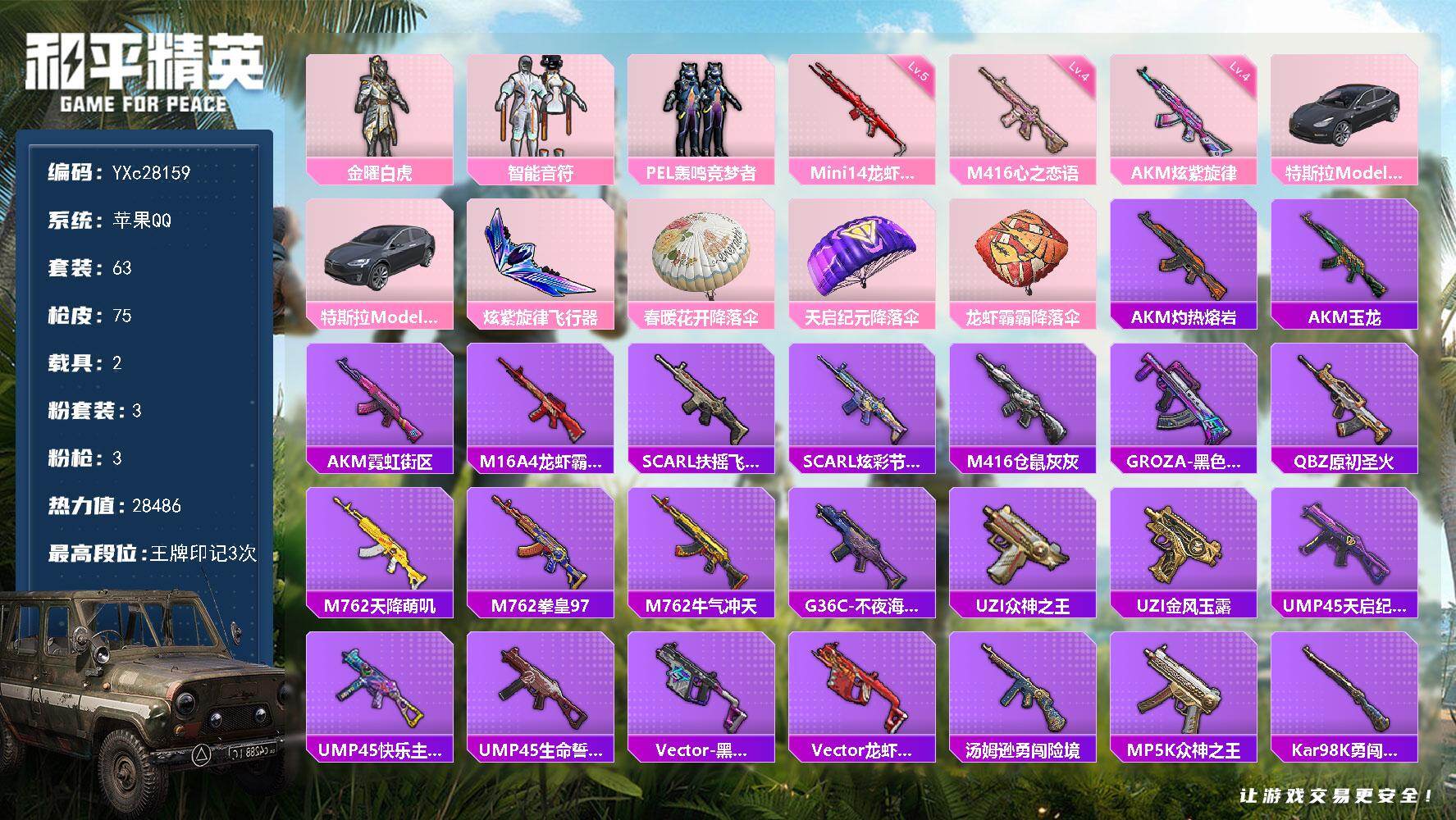 可二次-2载具3粉装3特效枪11热门63套装75枪皮 3印记 历史超级王牌3星 【2载具】 特斯拉3银色 特斯拉X银色 【3粉装】 金曜白虎 智能音符 PEL轰鸣竞梦者