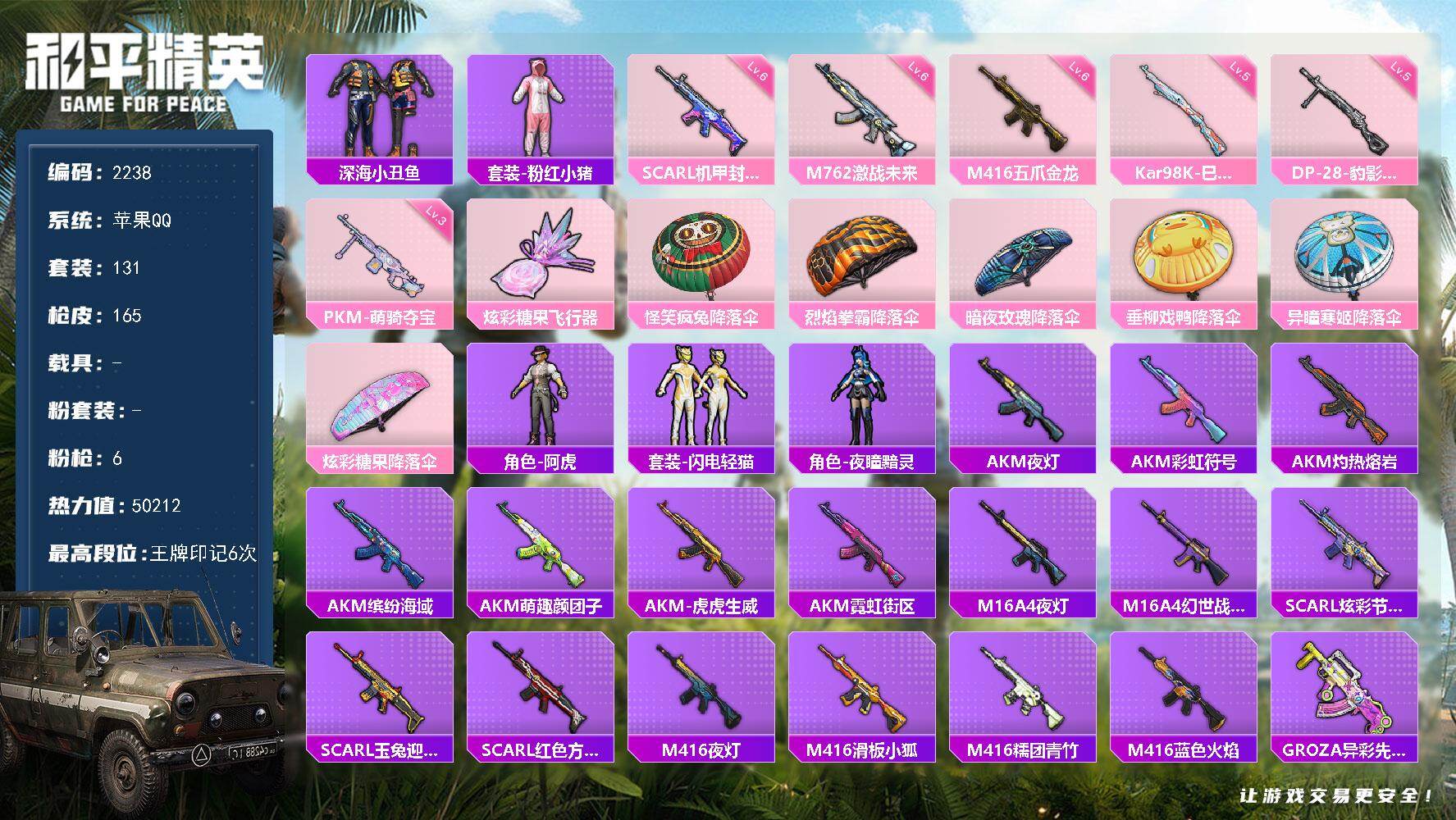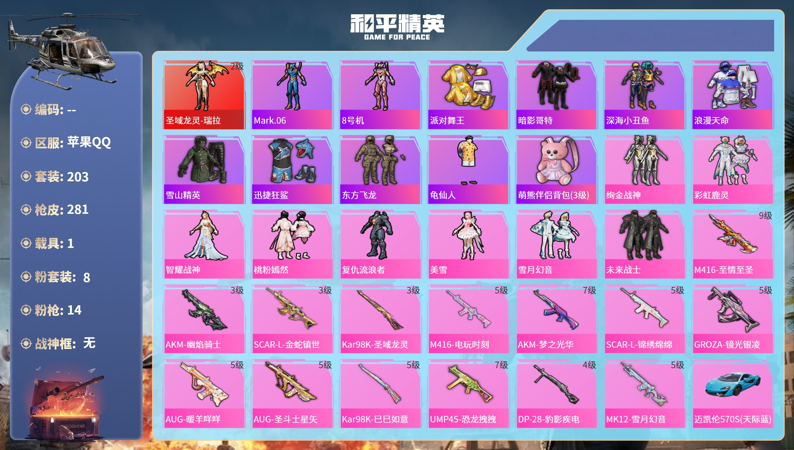 苹果手Q-18王牌印记-1红装-8粉装-14特效枪-1载具-965